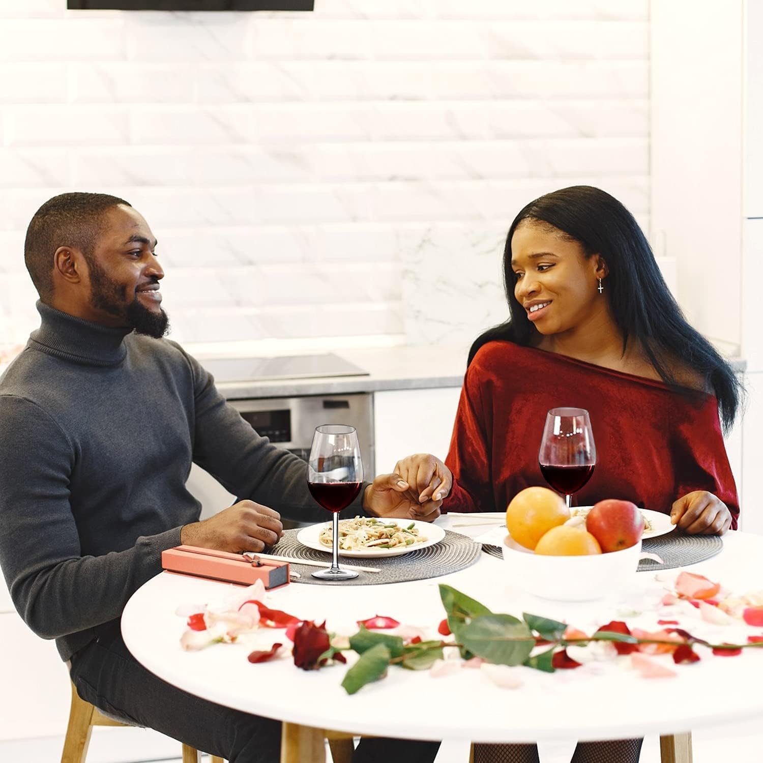 I calici decorativi in vetro trasparente per vino rosso da 540 ml, venduti in un set da 4, sono un'aggiunta elegante e raffinata alla tua collezione di bicchieri.