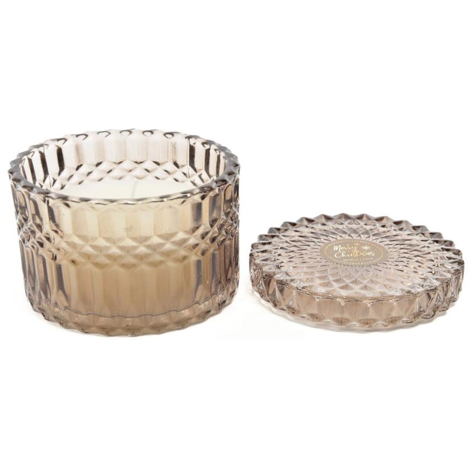 La trasparenza del vetro permette di vedere la fiamma della candela, che, quando accesa, diffonde una luce calda e avvolgente, riflettendosi attraverso le decorazioni del cofanetto.