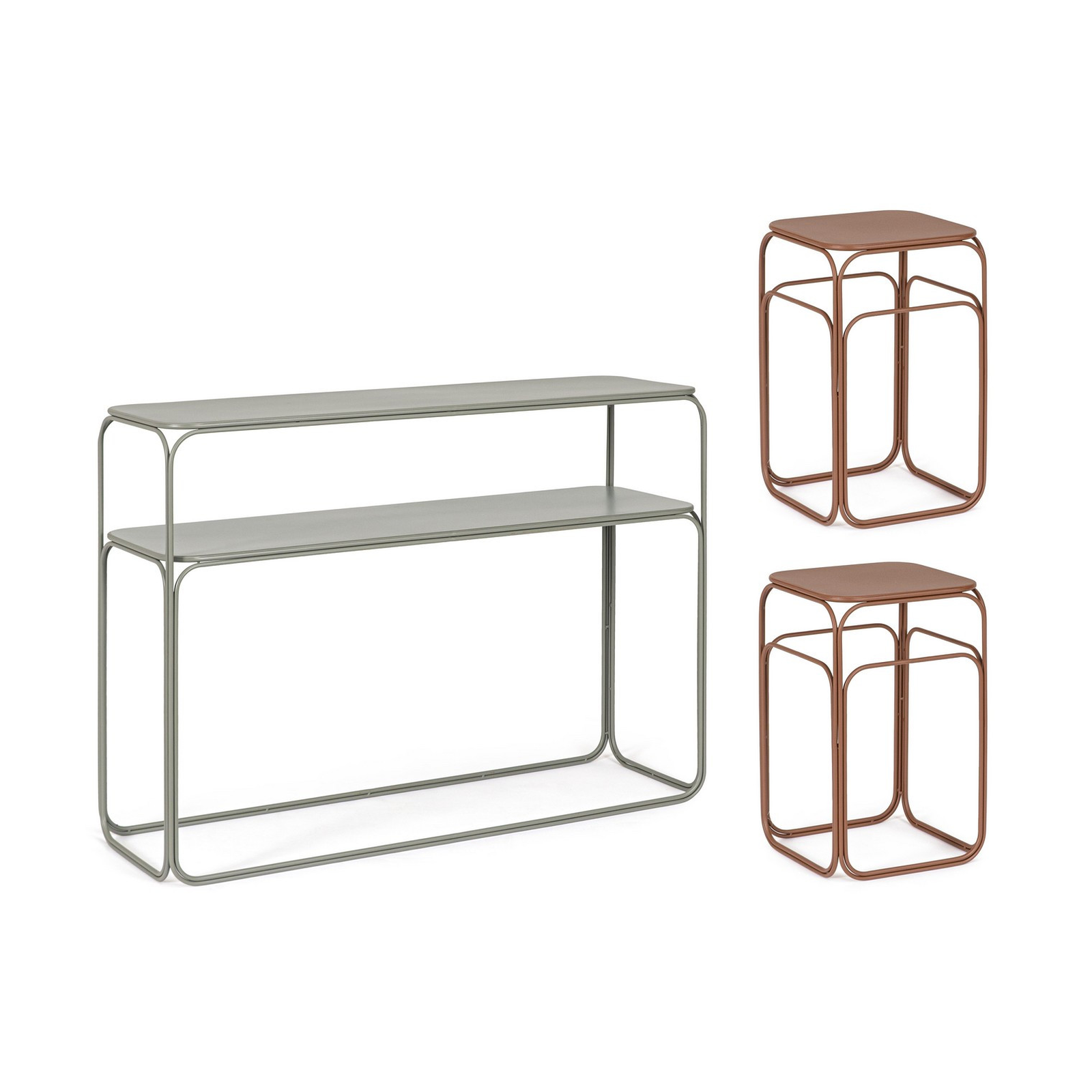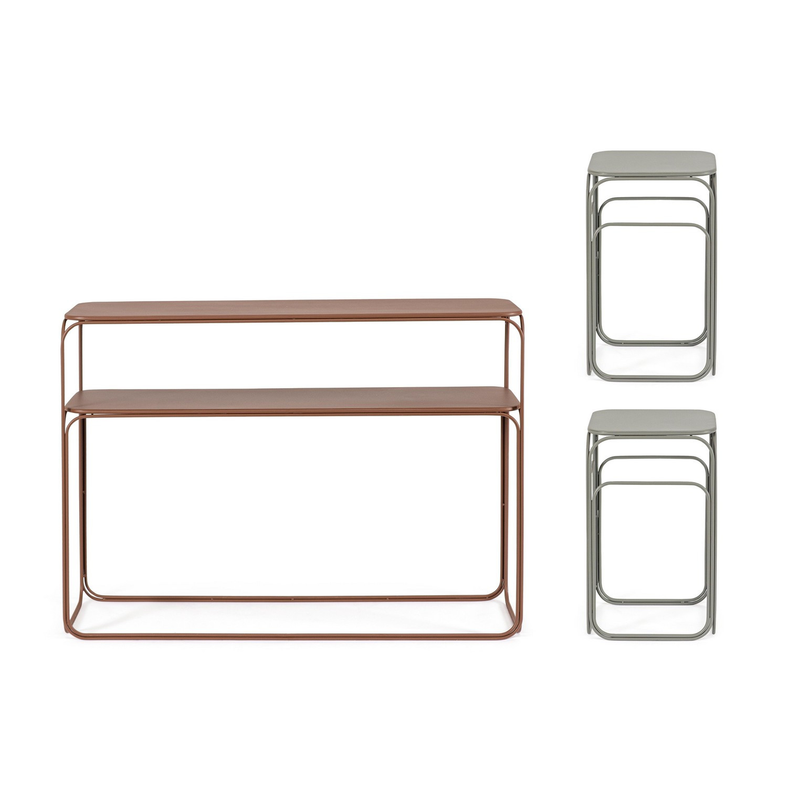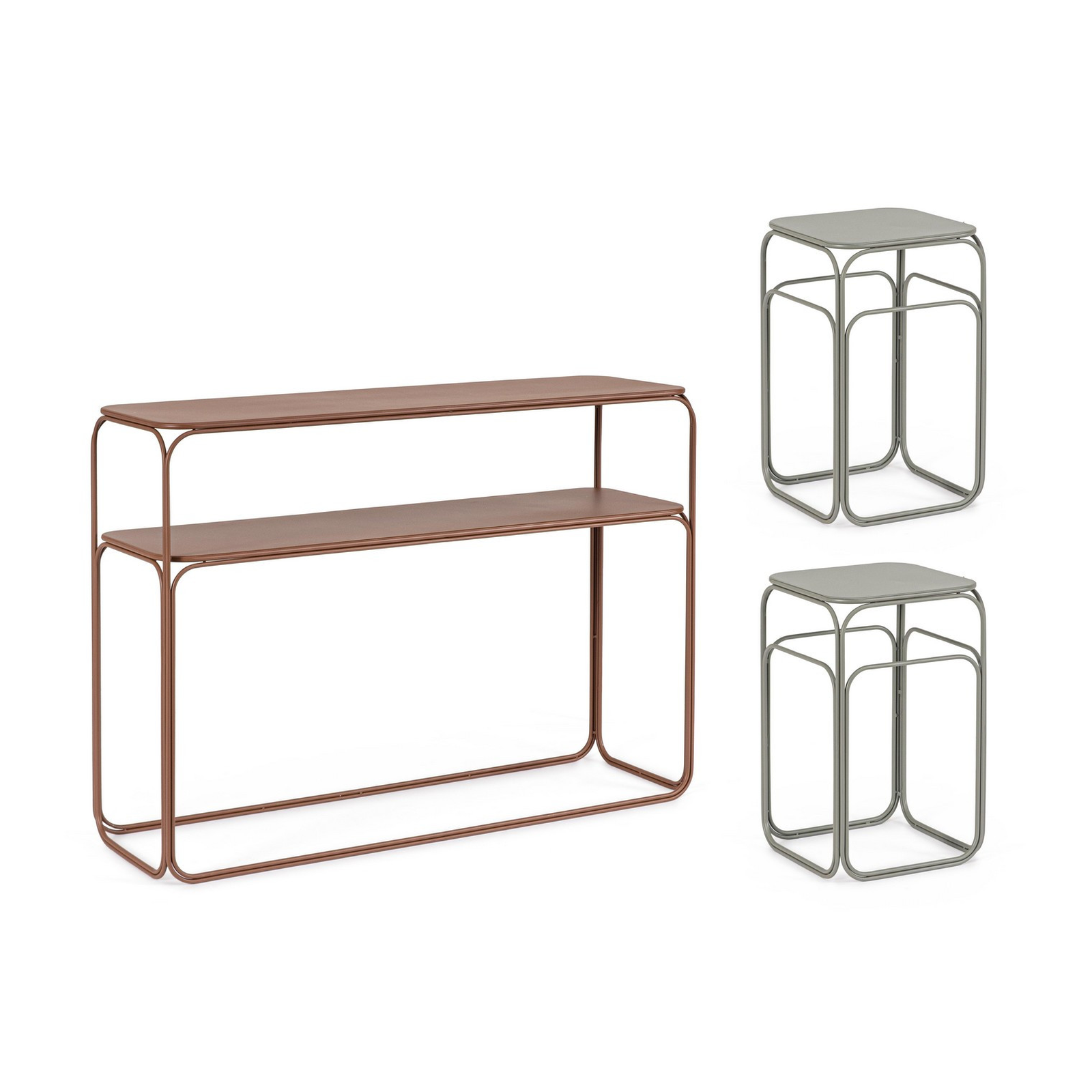 Consolle + 2 tavolini "Clarity" con struttura in acciaio, design moderno, per interno