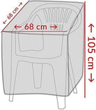 Proteggi le tue sedie da esterno con questa cover protettiva dalle dimensioni di 68 x 68 x 105 cm. Realizzata in materiale impermeabile e antistrappo, è progettata per resistere a pioggia, vento, polvere, sole e sporco, mantenendo la tua sedia sempre in perfette condizioni.