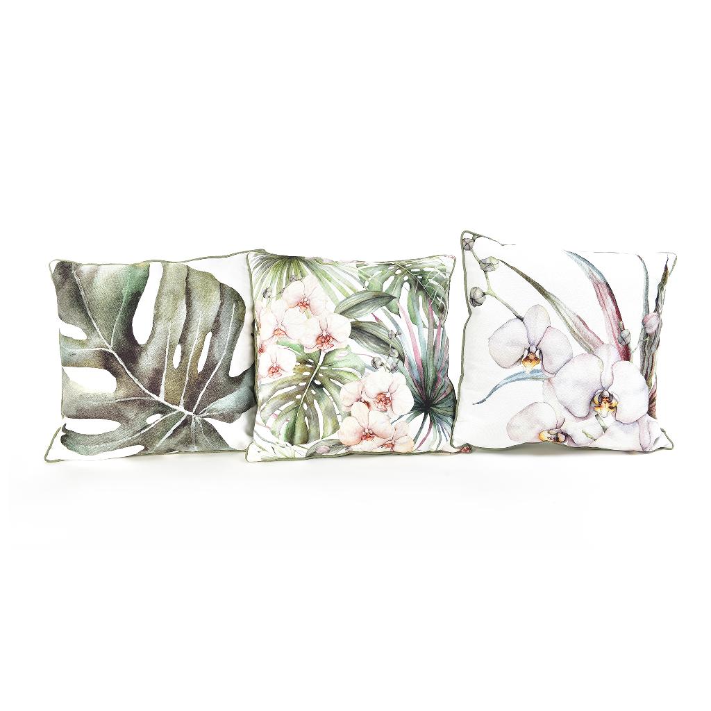 Aggiungi un tocco di freschezza e natura ai tuoi spazi con questo cuscino decorato con foglie e fiori.