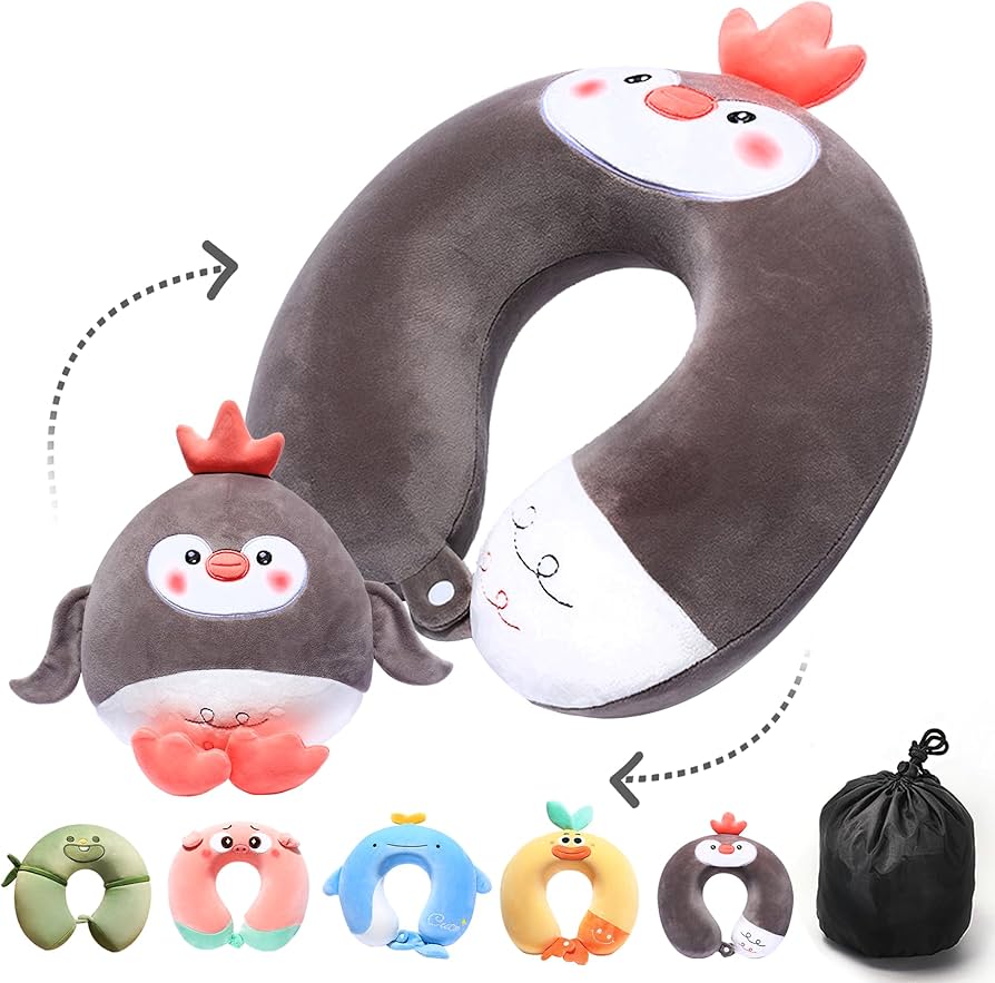 Questo cuscino da viaggio con peluche a forma di animaletto, realizzato in morbido poliestere, è il compagno perfetto per viaggi comodi e rilassanti.