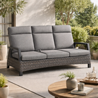 Il divano Britton a tre posti è la soluzione ideale per chi desidera vivere gli spazi esterni con il massimo del comfort, senza rinunciare a uno stile contemporaneo ed elegante.
