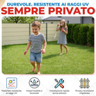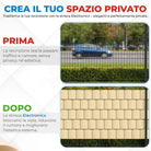 Facile e veloce da installare, la fascia è completa di 25 clips di fissaggio, che permettono un montaggio pratico e stabile su reti metalliche e recinzioni. Una soluzione funzionale e resistente per proteggere, delimitare e valorizzare i tuoi spazi esterni con stile.