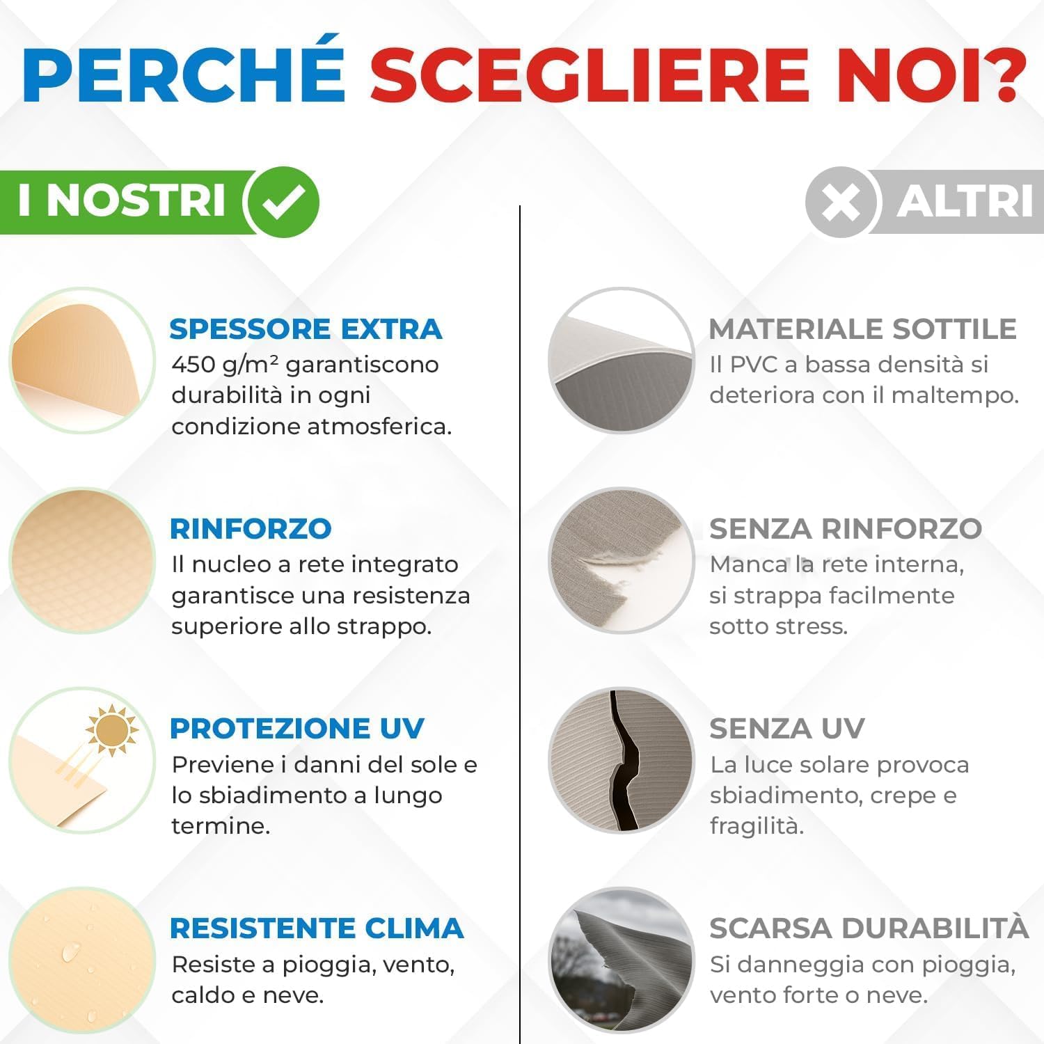 Resistente ai raggi UV, vento e intemperie