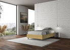 Il letto una piazza e mezza “New York” imbottito in tessuto Aragona è la soluzione ideale per chi desidera una camera da letto elegante, accogliente e ben organizzata.