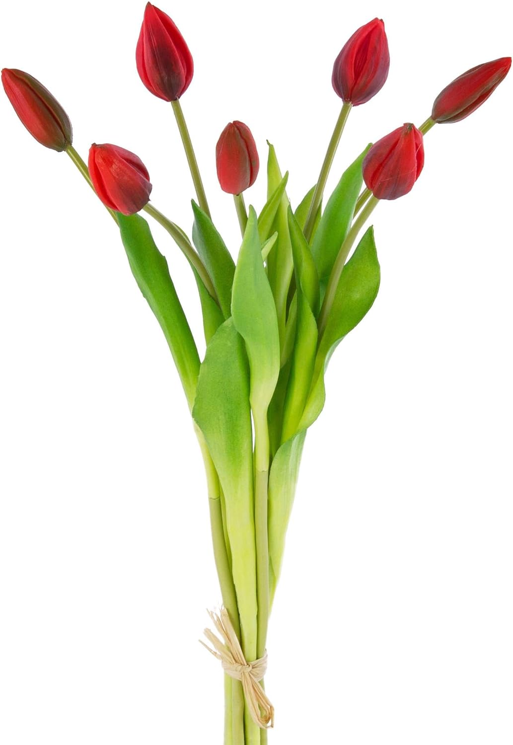 Il mazzo di 7 tulipani in gomma per decorazione ambienti, alto 31 cm, è un raffinato elemento decorativo perfetto per abbellire qualsiasi spazio con un tocco di eleganza.