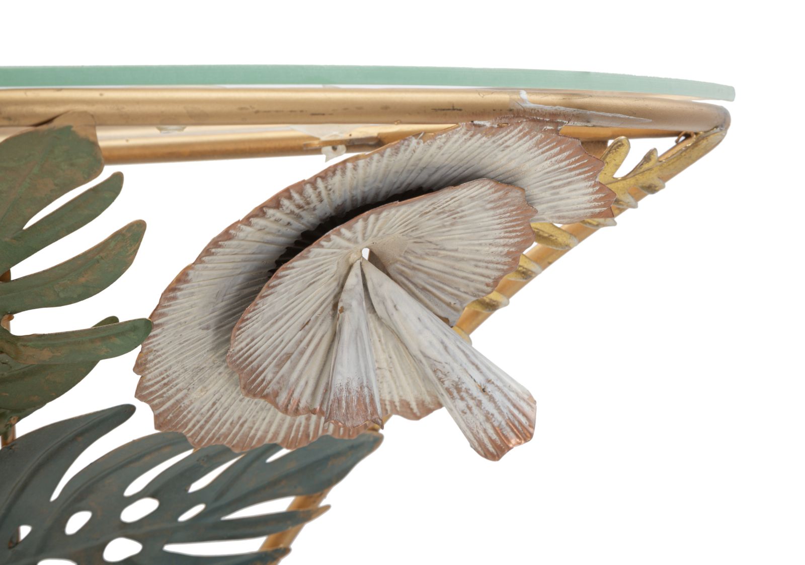 La struttura in metallo, che può essere finita in varie tonalità e texture, come nero opaco, bianco, cromo lucido, ottone spazzolato o ferro grezzo, sostiene in modo sicuro il ripiano in vetro.
