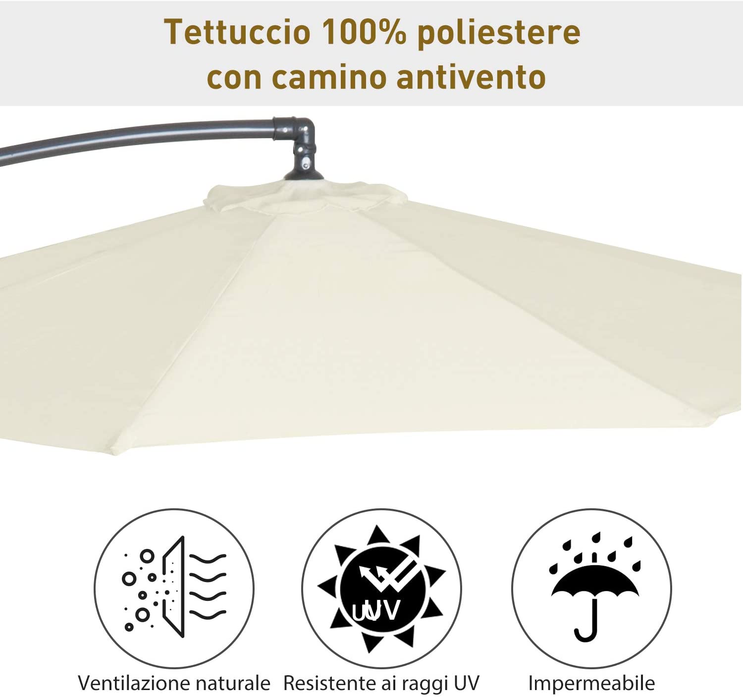 Ombrellone da giardino con palo decentrato in acciaio verniciato a polvere.