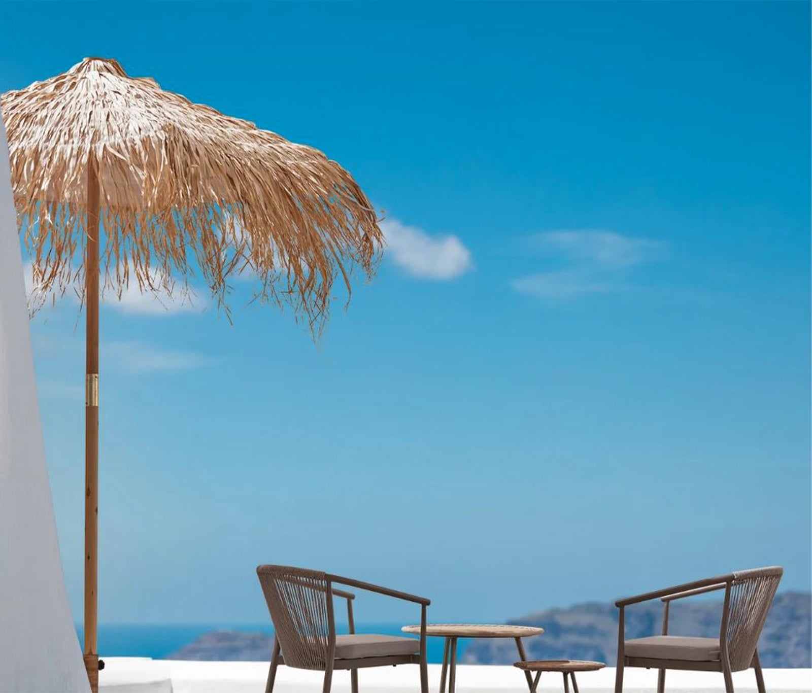 Realizzato con materiali naturali, il telo in paglia dona un aspetto rustico e affascinante, richiamando lo stile delle località esotiche.