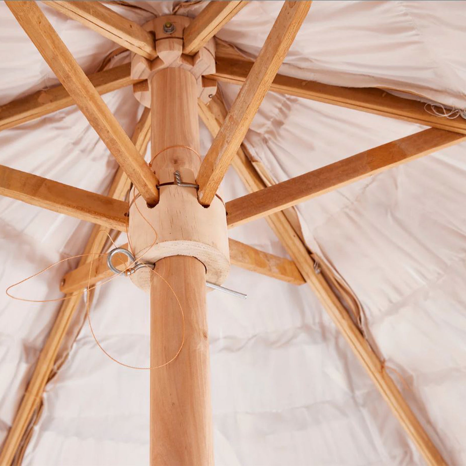 Perfetto per chi cerca un tocco di eleganza e naturalezza negli spazi esterni, questo ombrellone non solo protegge dai raggi solari ma aggiunge anche un elemento decorativo unico.