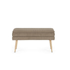 La seduta imbottita garantisce comfort e solidità, mentre la base in acciaio effetto legno aggiunge un tocco elegante e naturale, rendendo questa panca una scelta raffinata e versatile per ogni casa.