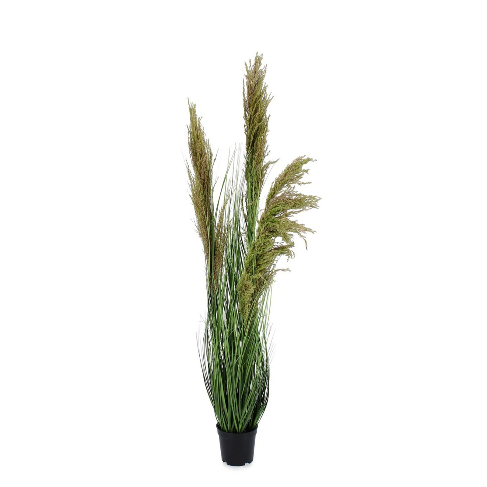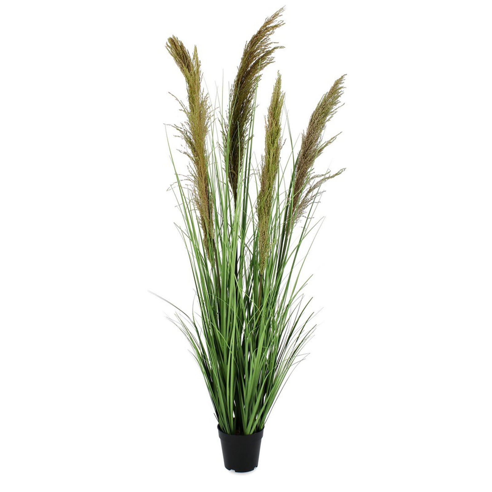 Pianta artificiale "Carine Pampas" verde e marrone, fiore in ciuffi con vaso in plastica