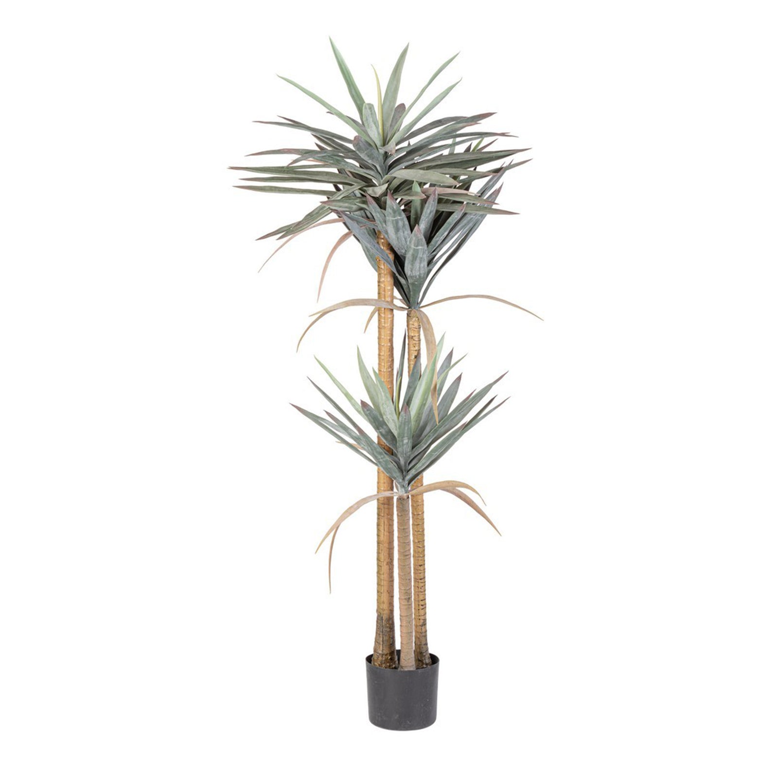 Pianta artificiale "Yucca" con vaso in plastica nero, con foglie in plastica