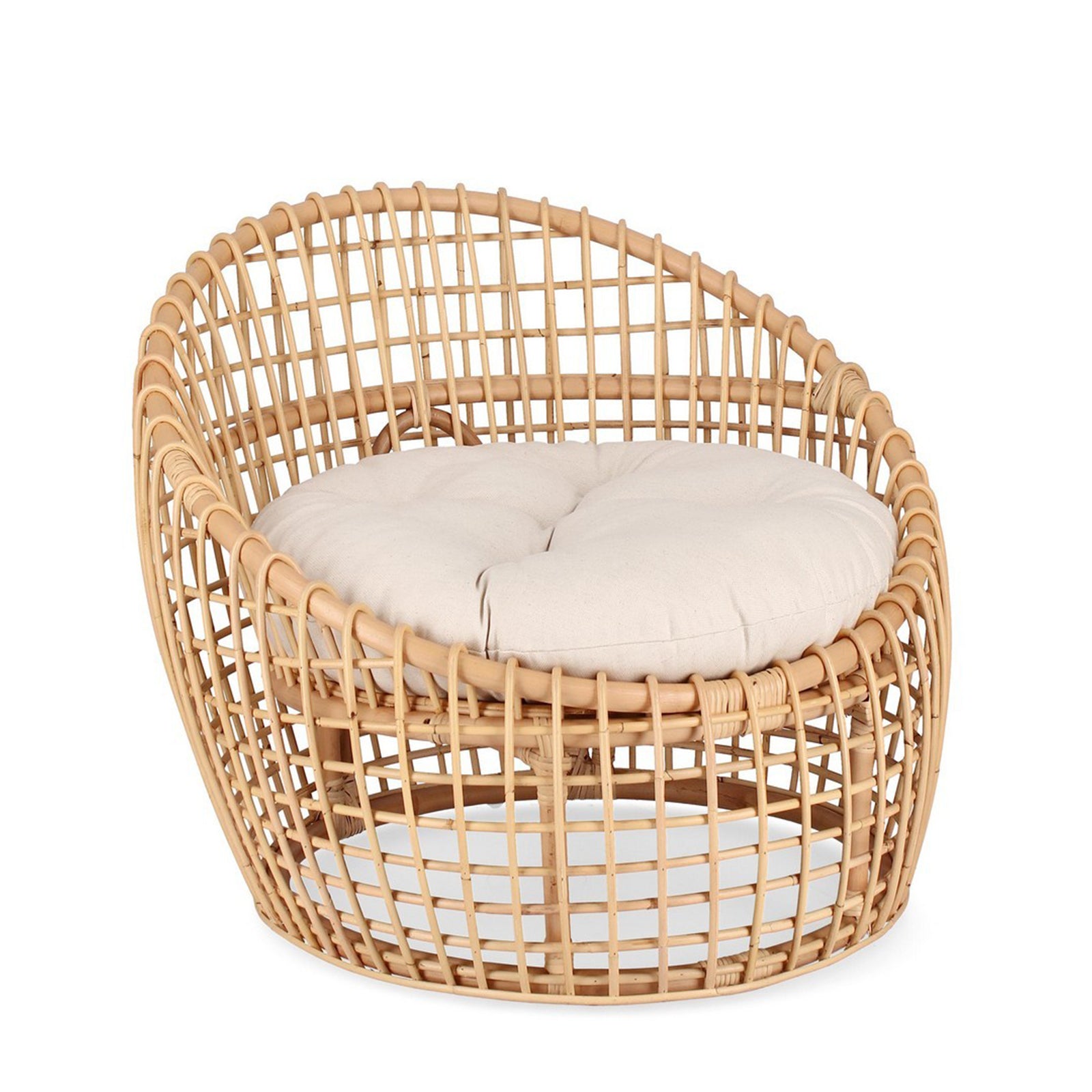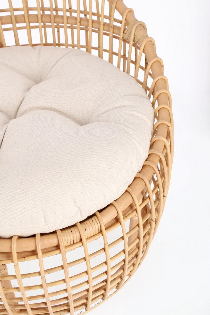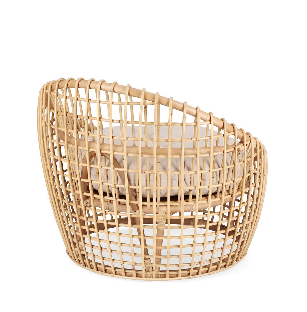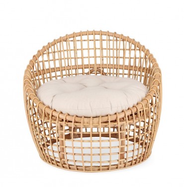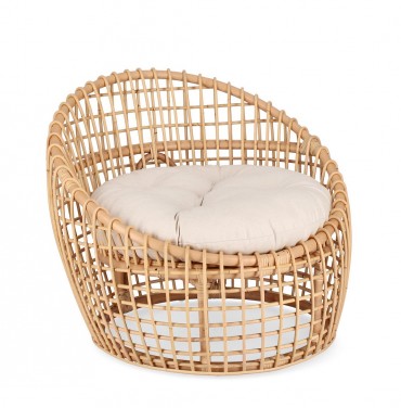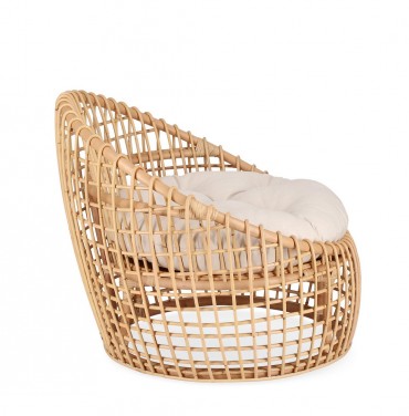 Poltrona "Camaleonte" con struttura in rattan e cuscino