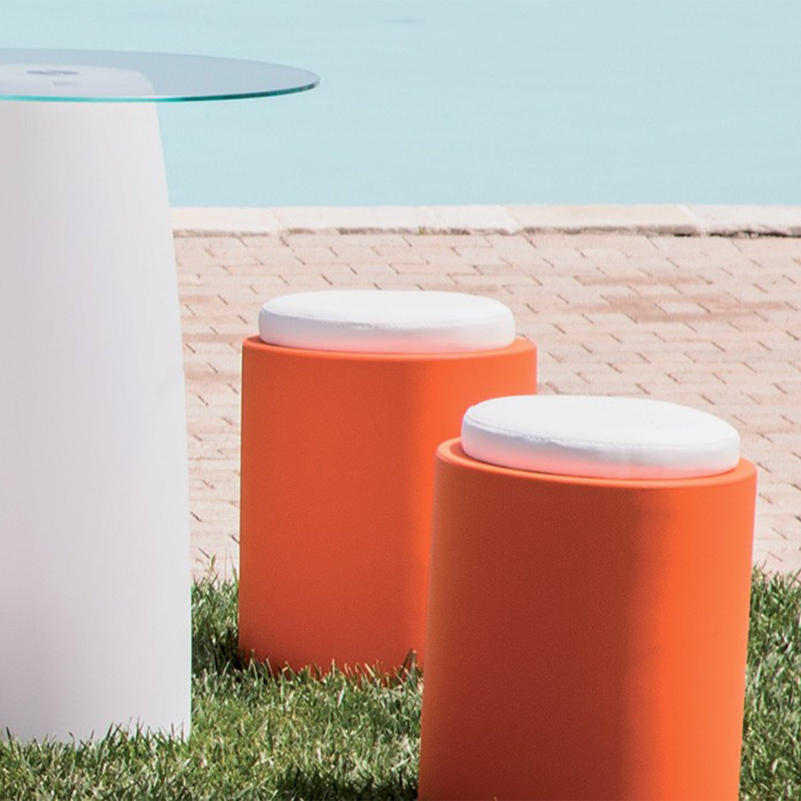 Poltroncina Comfy Round pouf in resina con cuscino alto confortevole Made in Italy