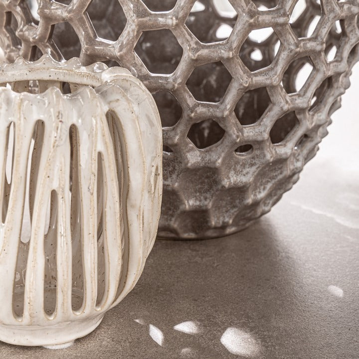Porta vaso decorativo "Taiyo" bombato in ceramica per arredo interno