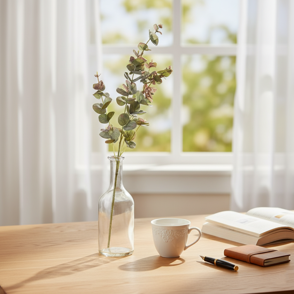 Aggiungi un tocco di freschezza e stile ai tuoi ambienti con questo ramo decorativo in eucalipto verde, ideale per valorizzare la casa con un accento naturale e raffinato.