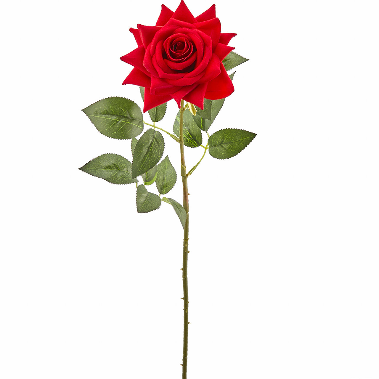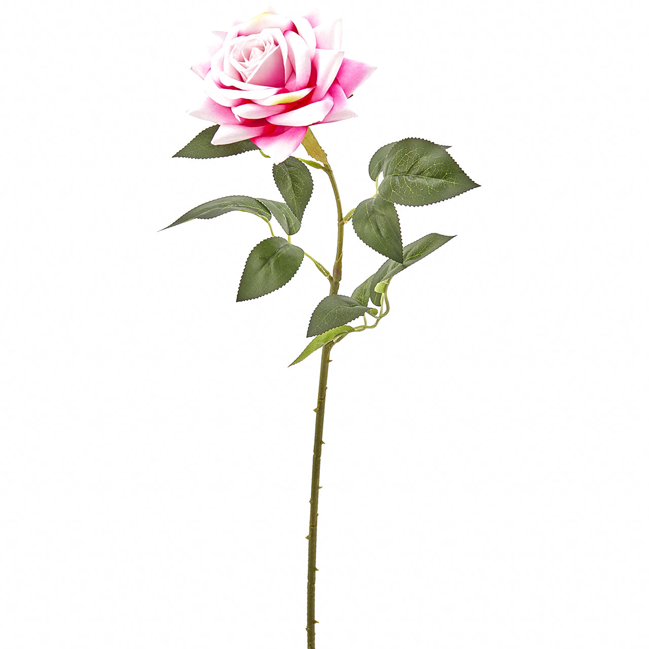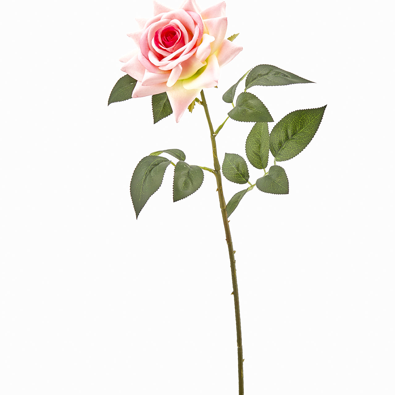 Rosa aperta sintetica artificiale con stelo e foglie effetto realistico. Ideale per donare grazie ed eleganza con un tocco floreale. Gambo con foglie verdi e petali dai colori delicati.