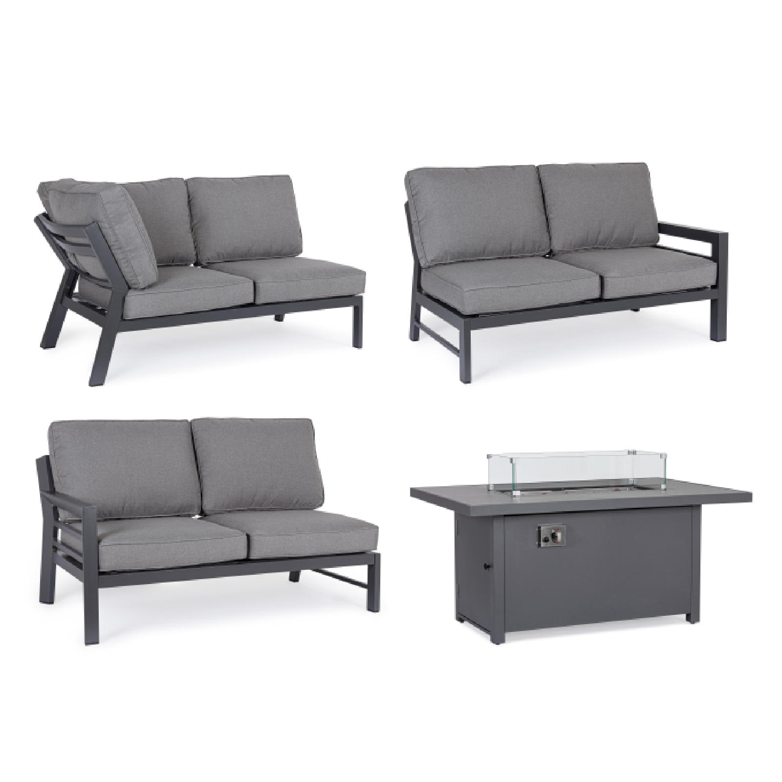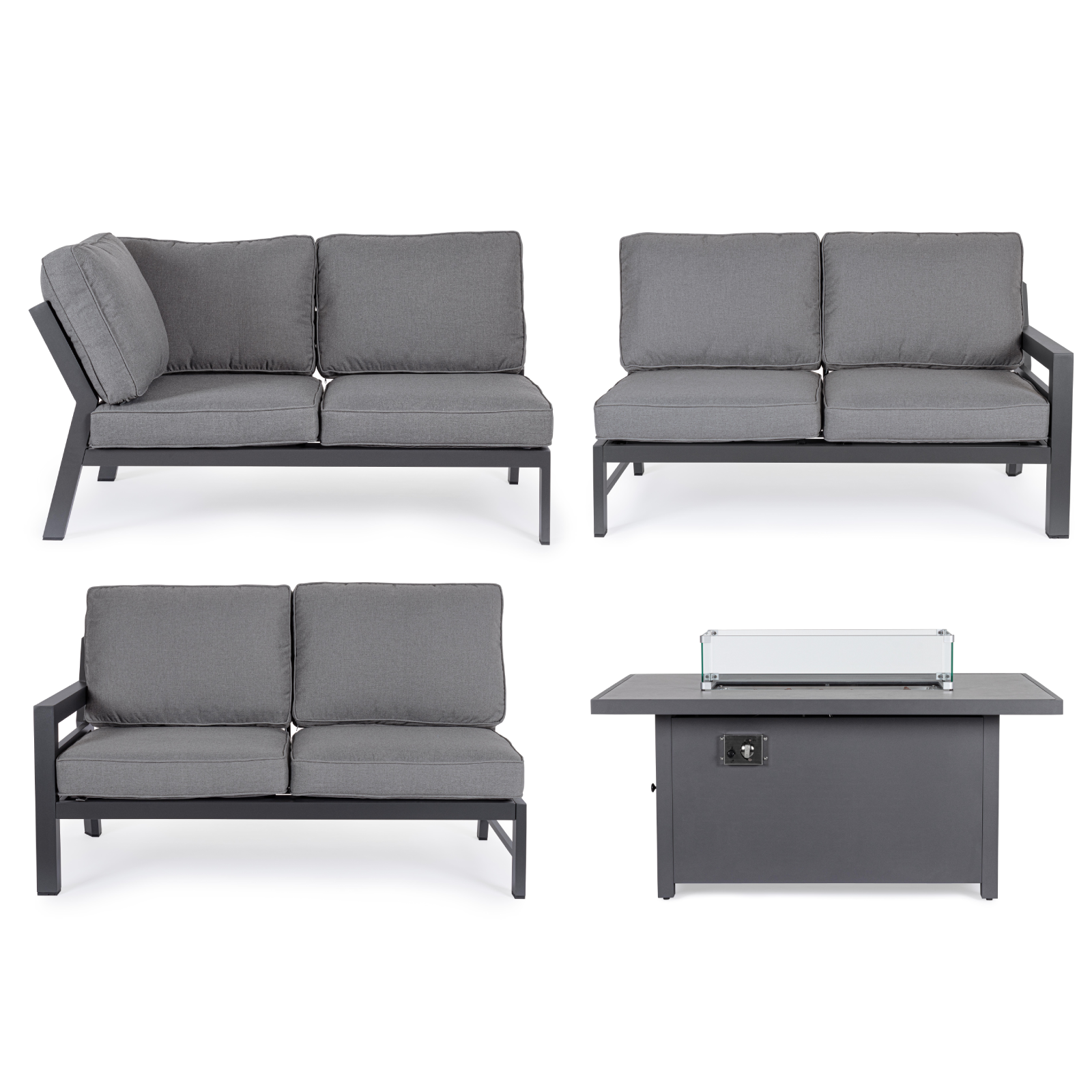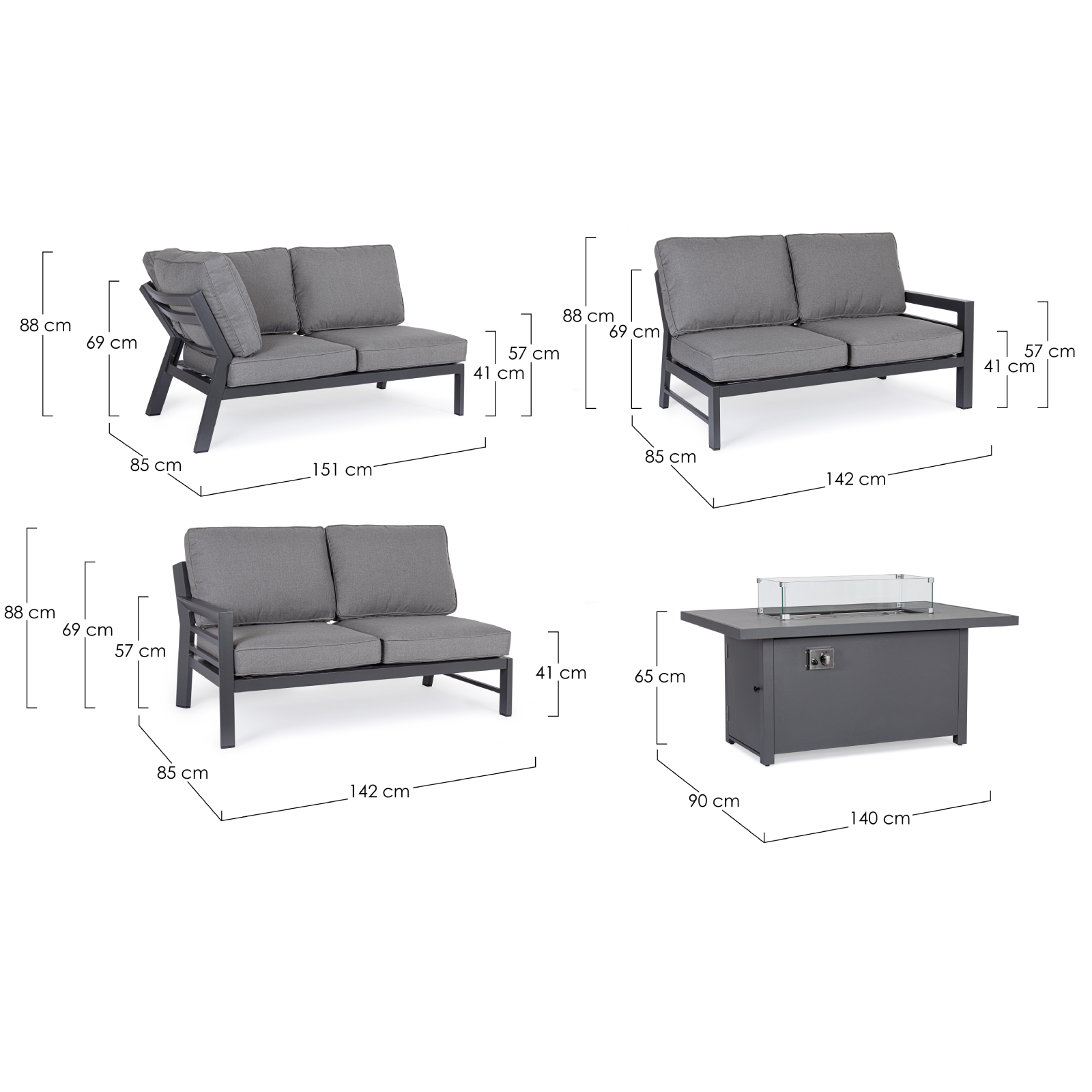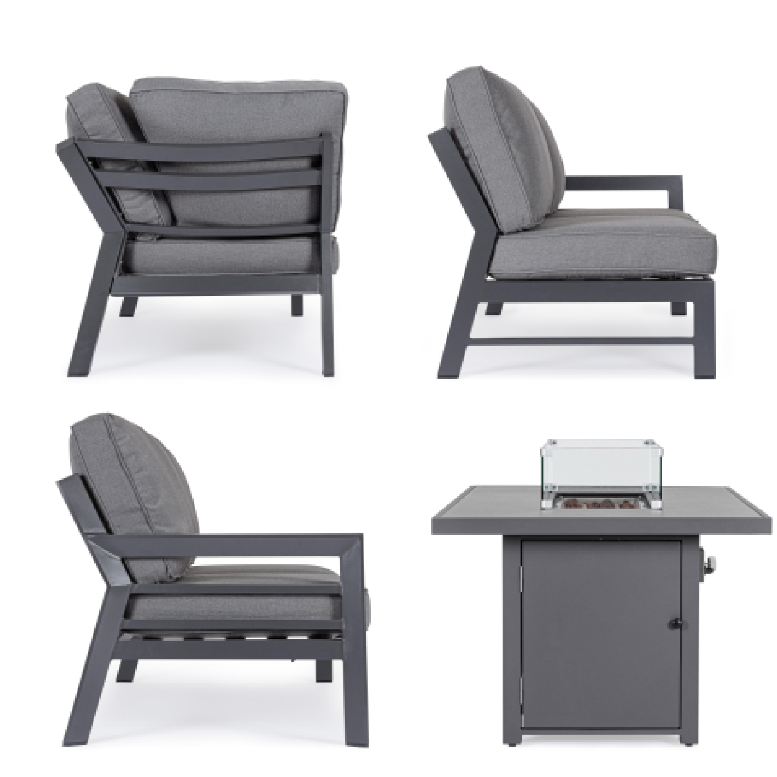 Salottino angolare "Hendrix" con tavolino e divanetto, struttura in alluminio, per esterno