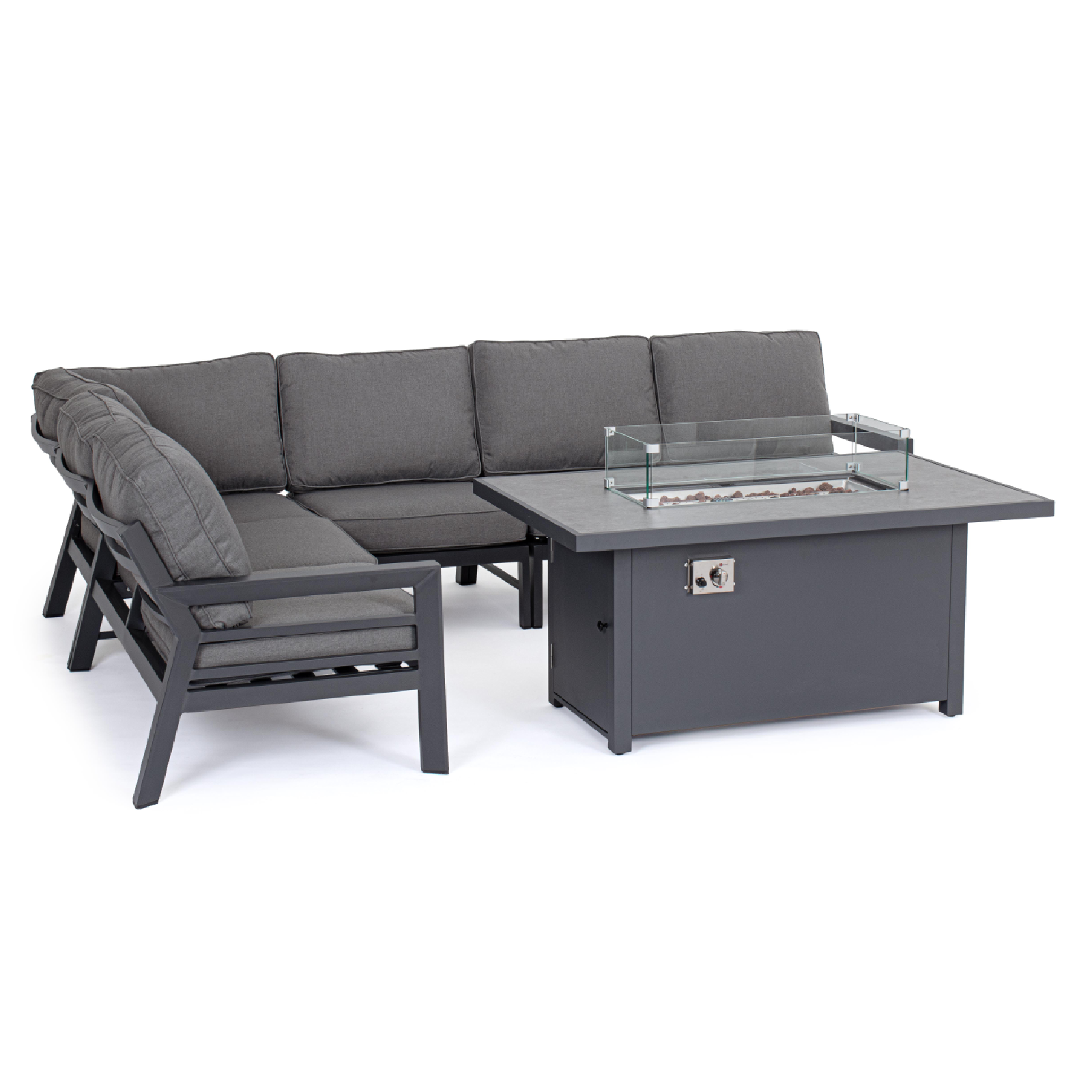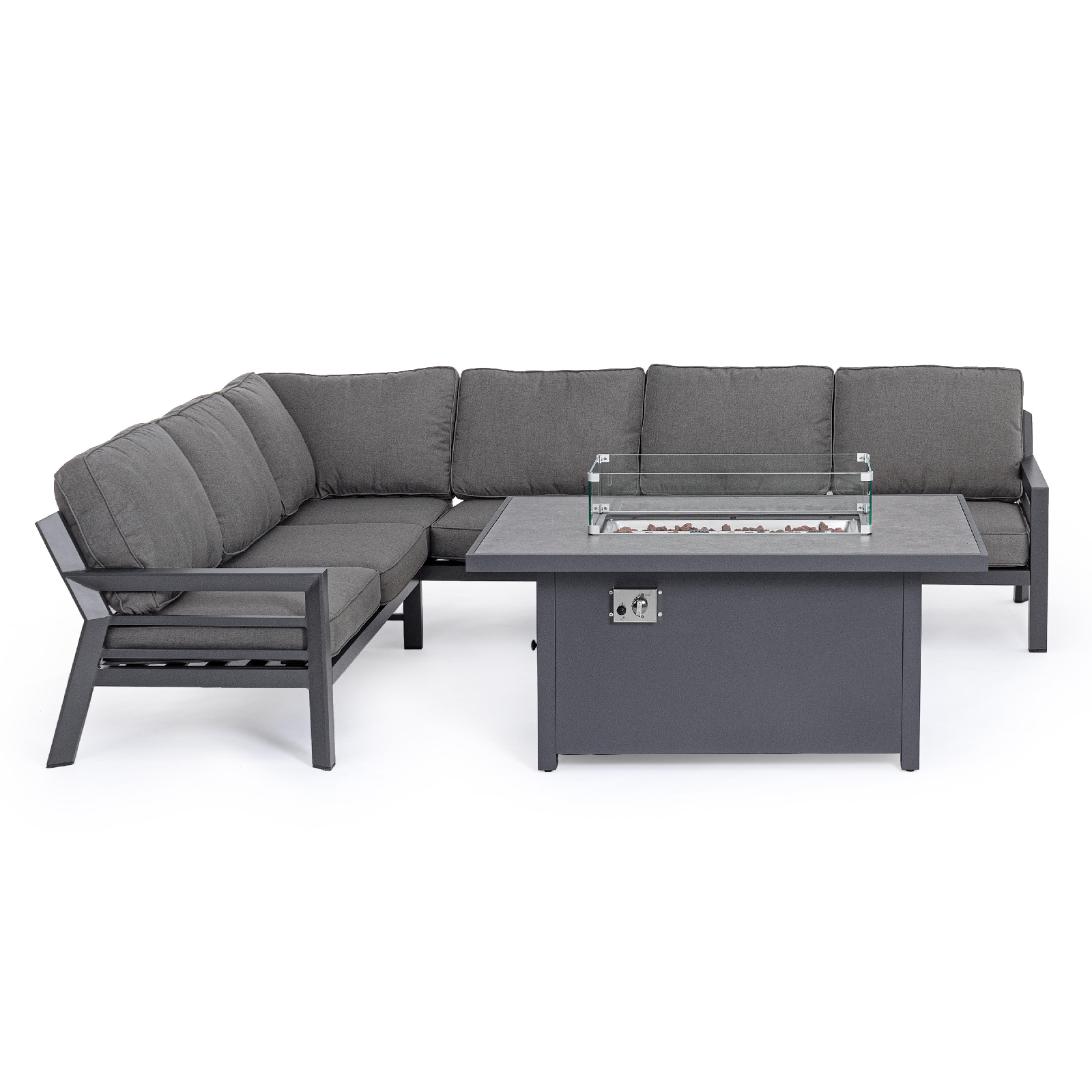 Il salottino angolare "Hendrix" con tavolino e divanetto è un'aggiunta elegante e funzionale per qualsiasi spazio esterno.