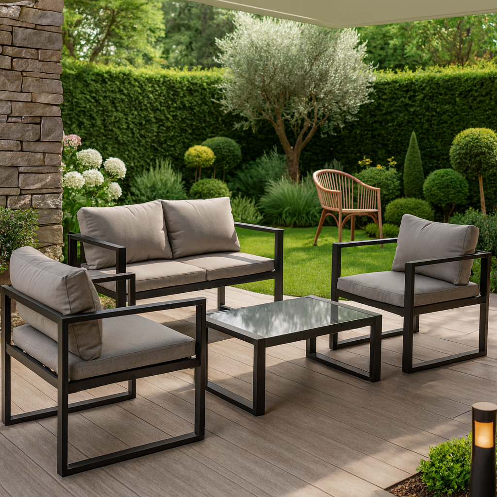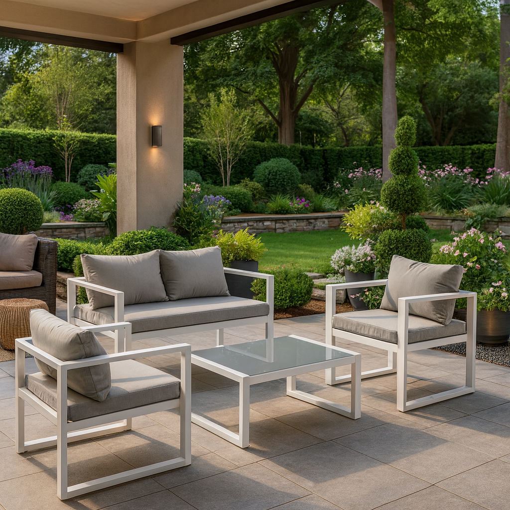 Salottino con cuscini "Corinth" in alluminio verniciato da giardino e veranda