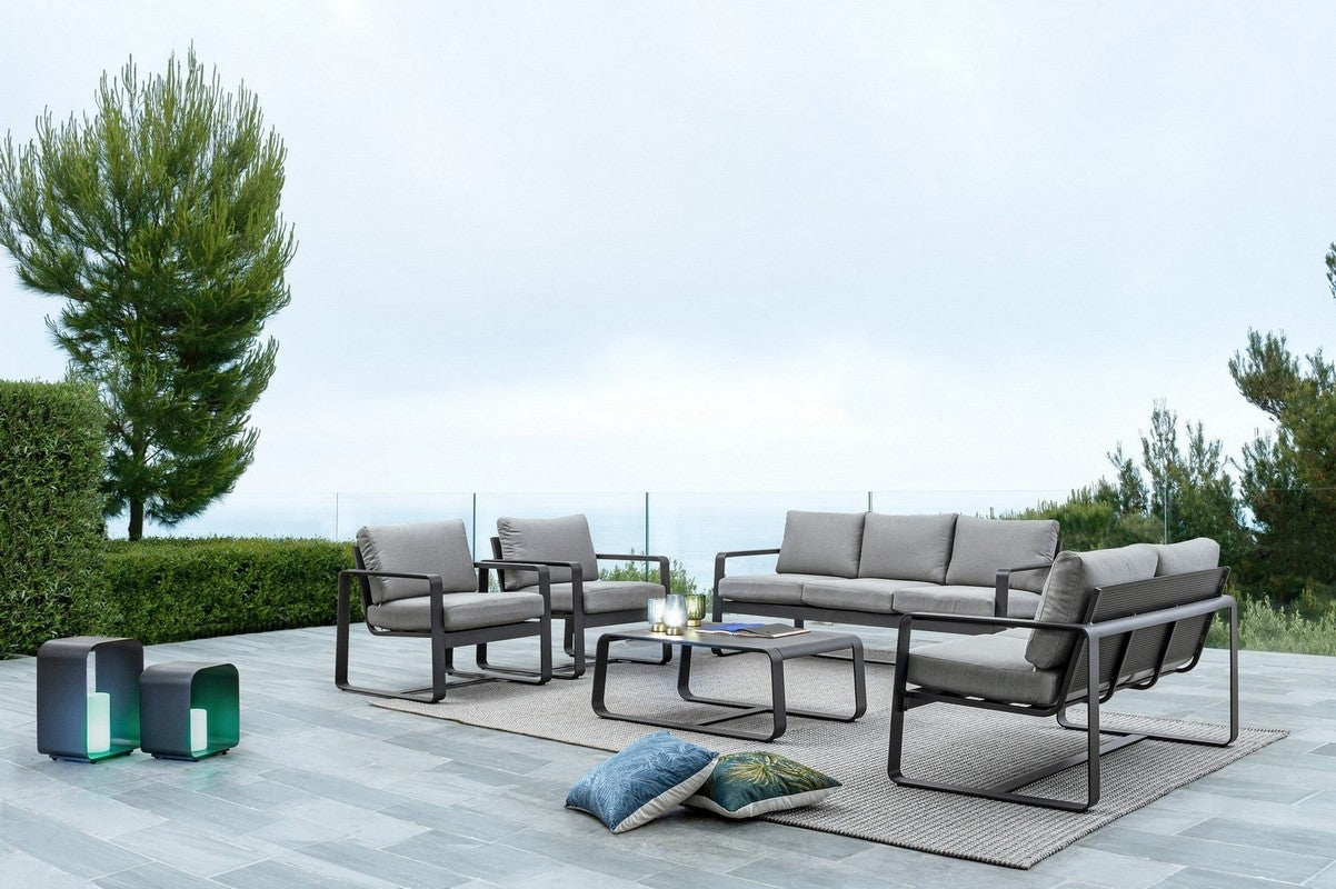 Salottino con cuscini "Merrigan" in alluminio verniciato da giardino e veranda