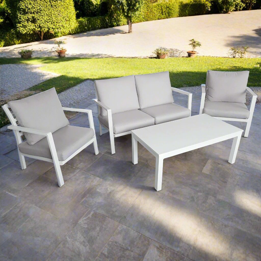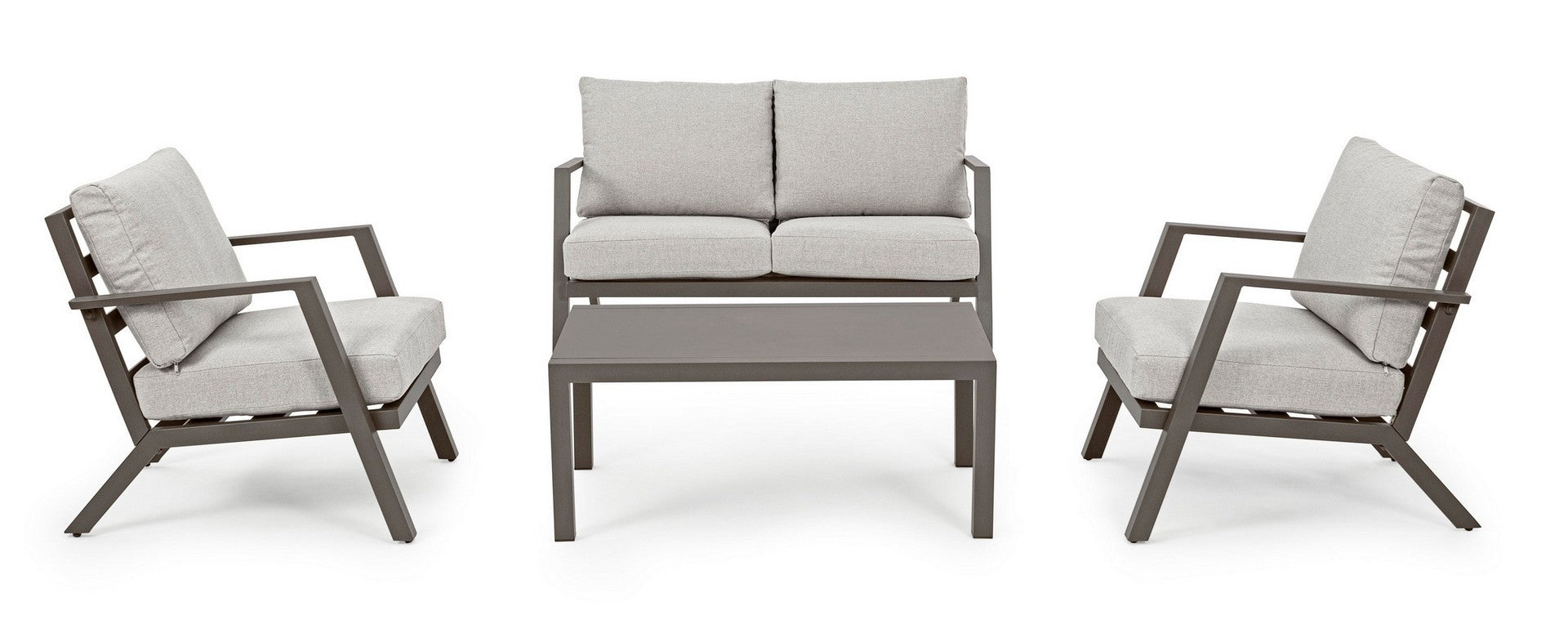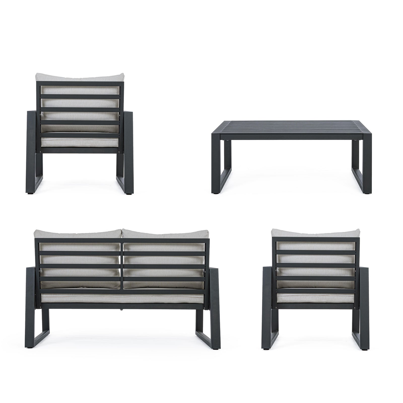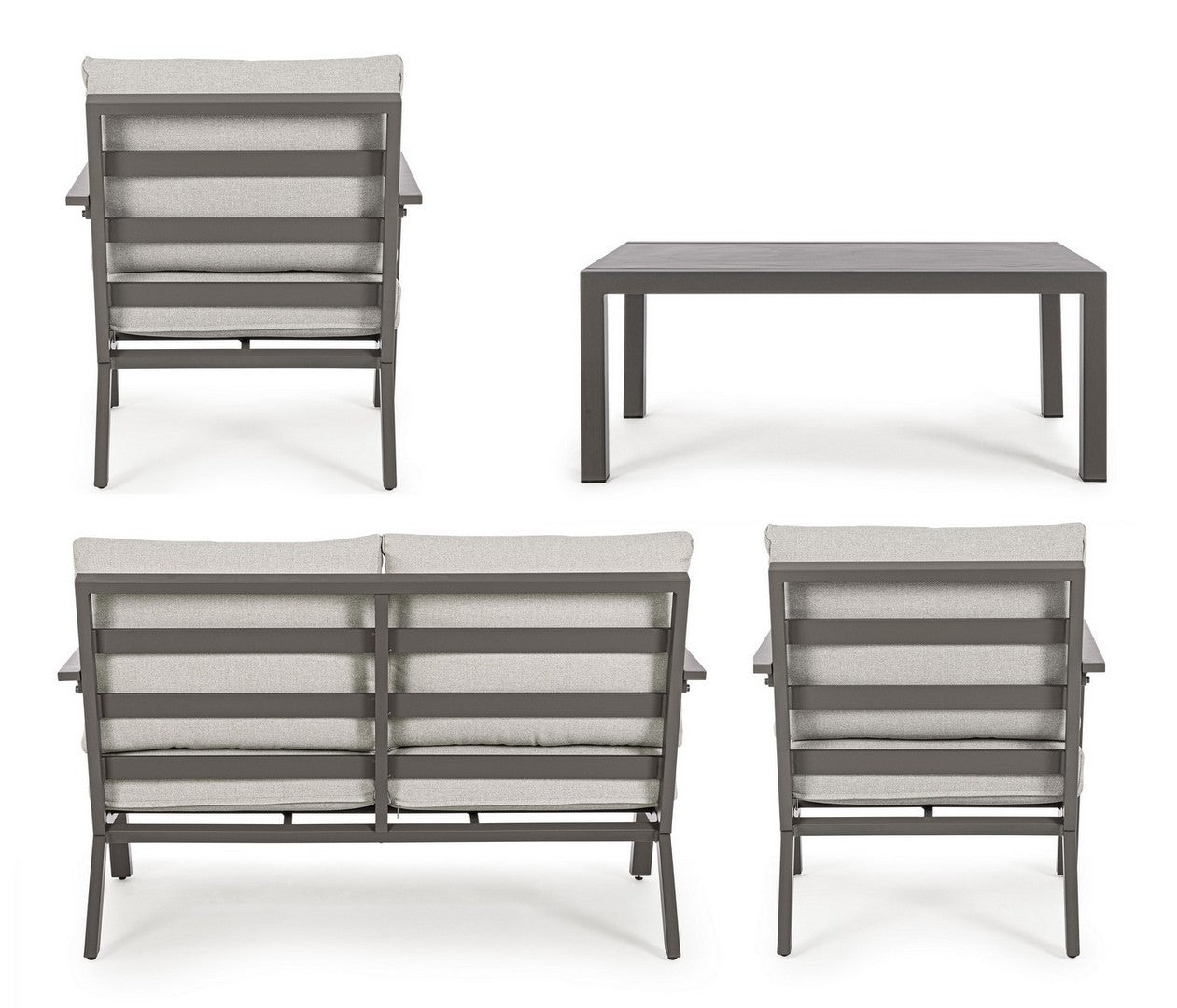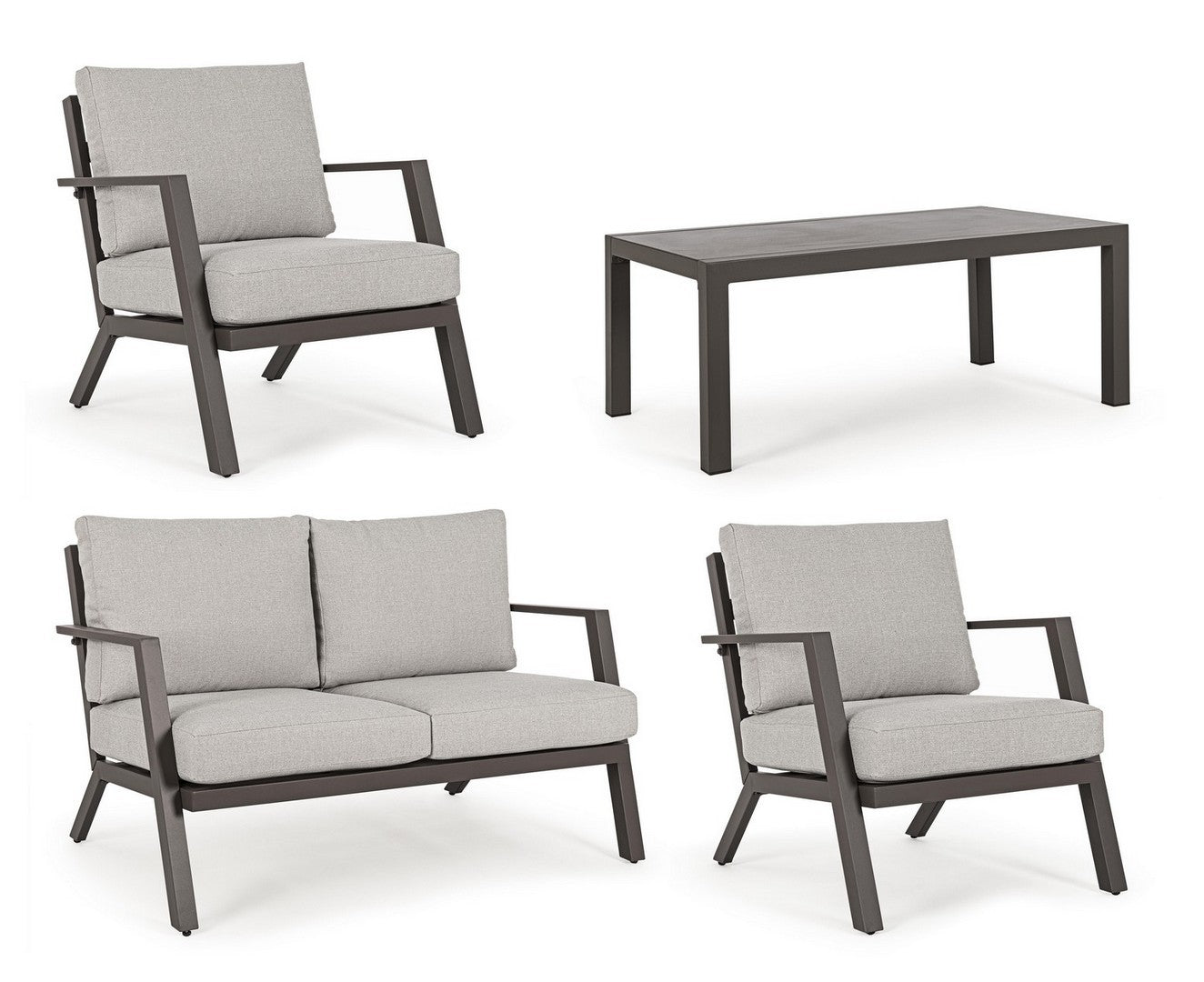 Salottino moderno per esterno "Ibiza" in alluminio con cuscini da giardino e veranda