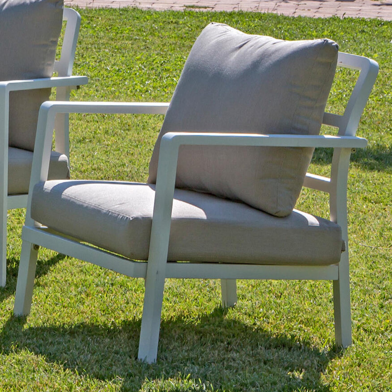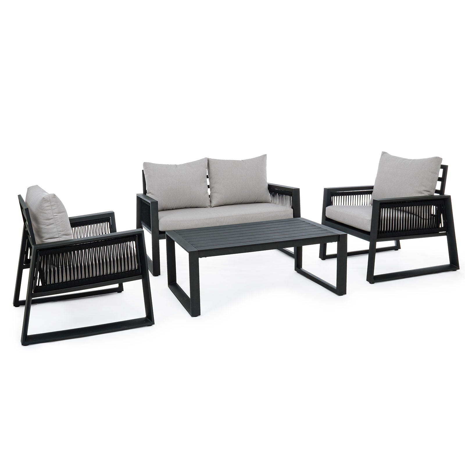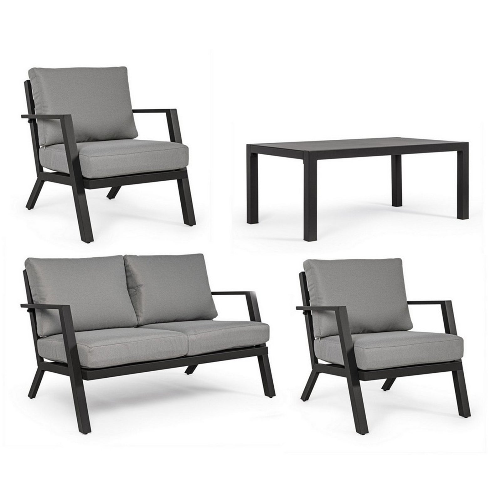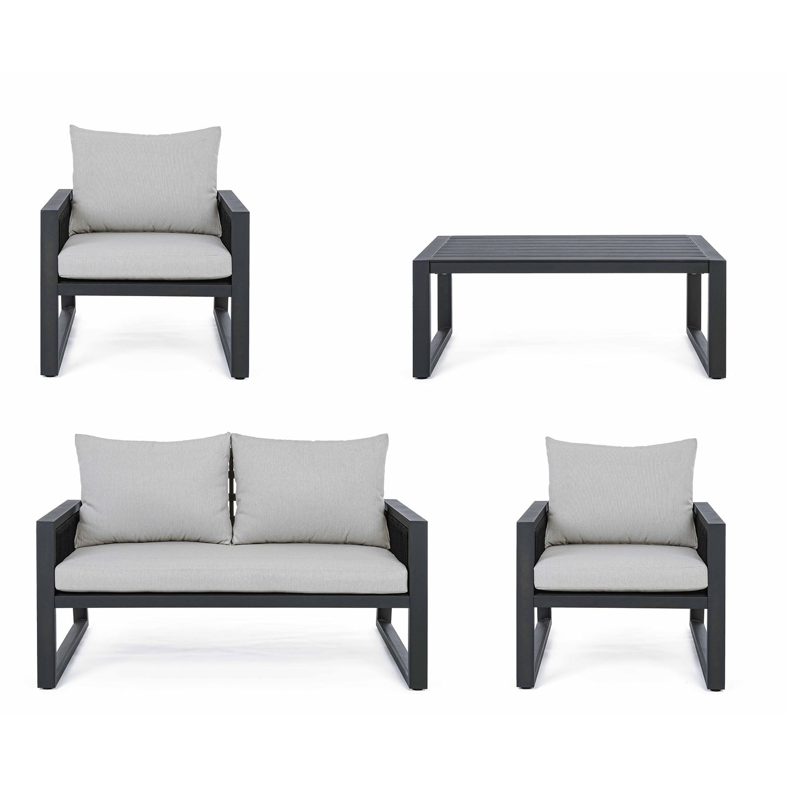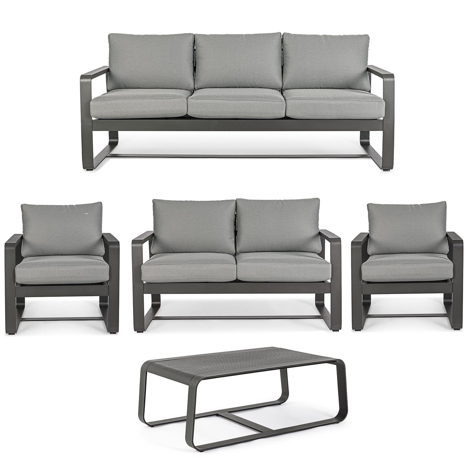 Salottino moderno per esterno "Ibiza" in alluminio con cuscini da giardino e veranda