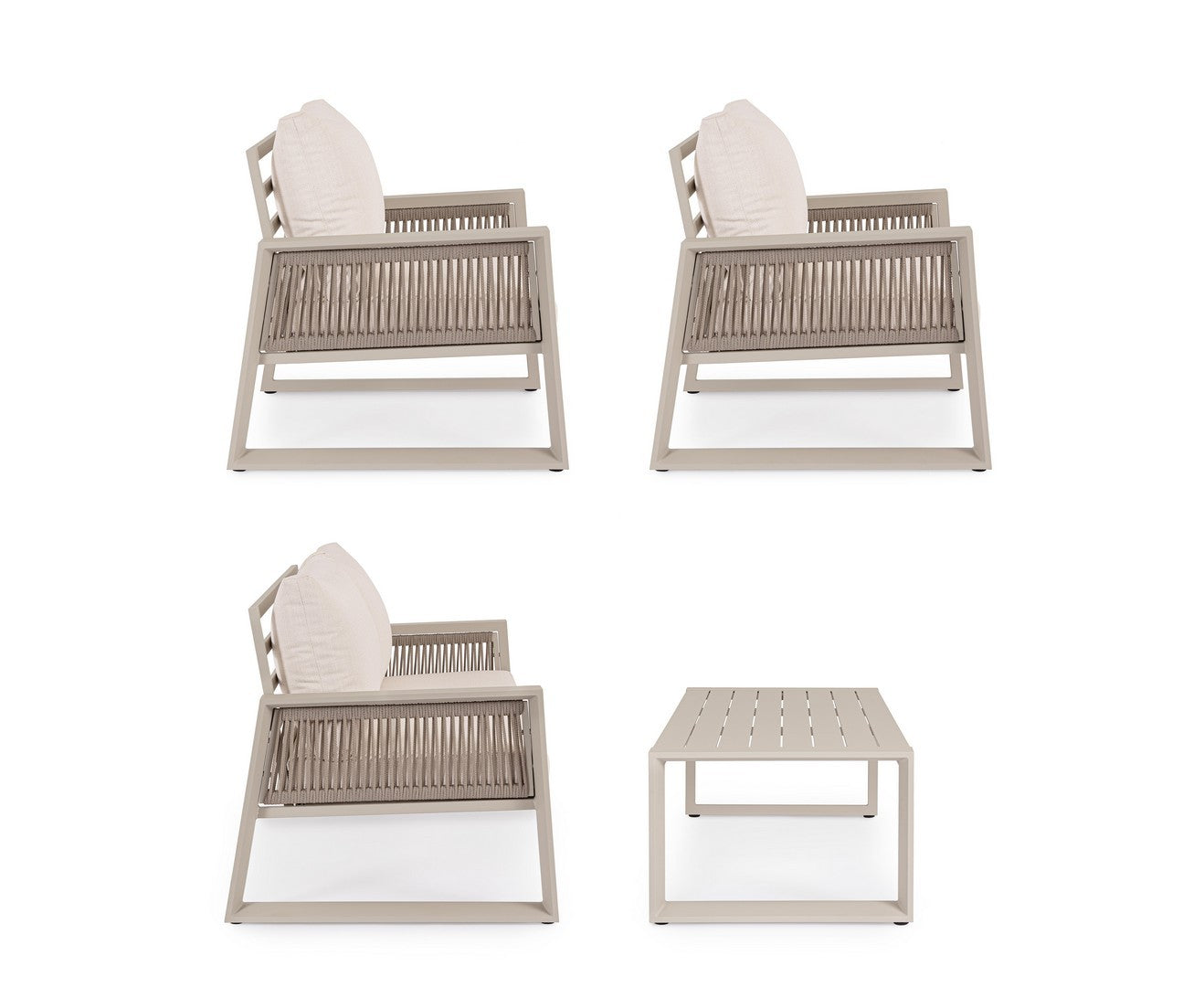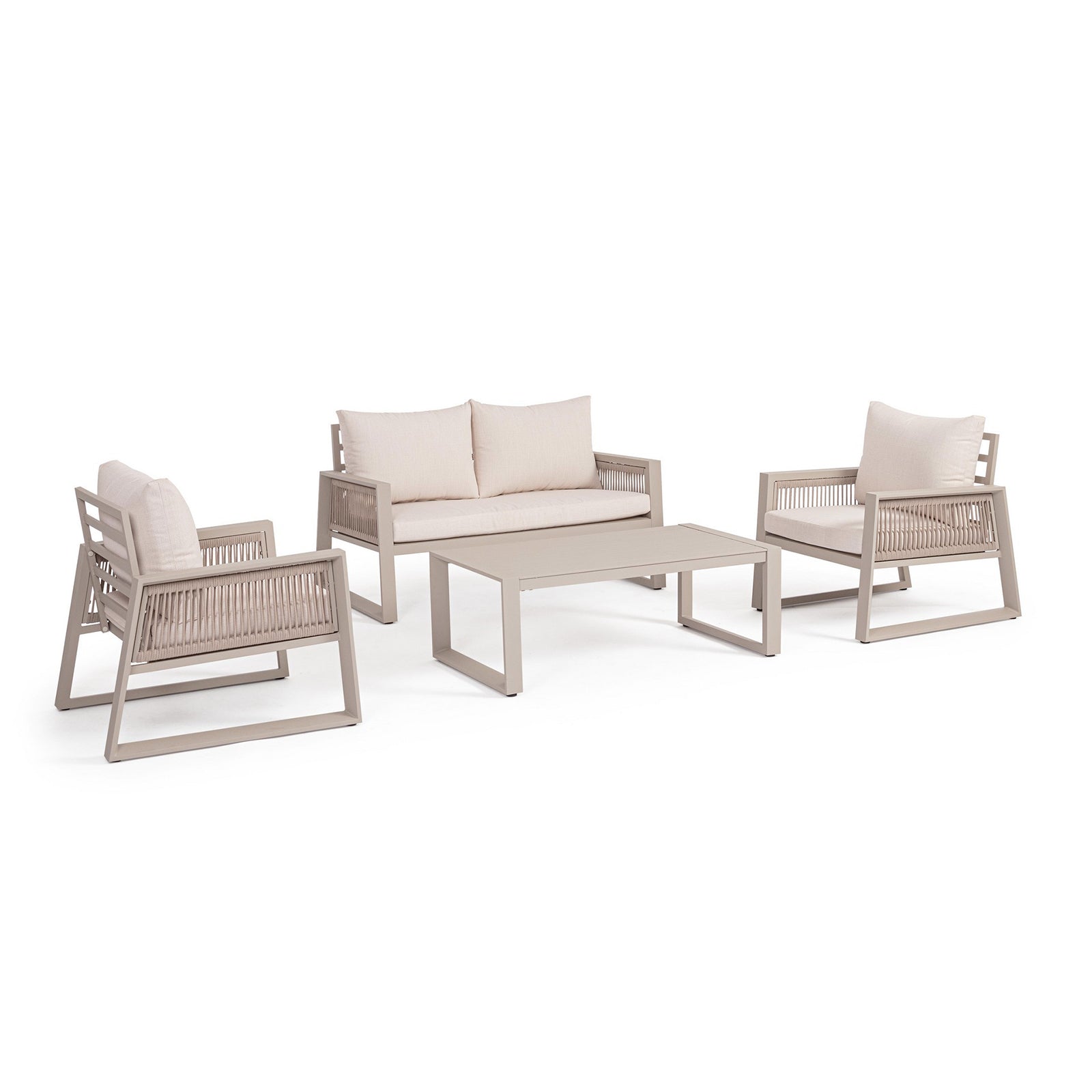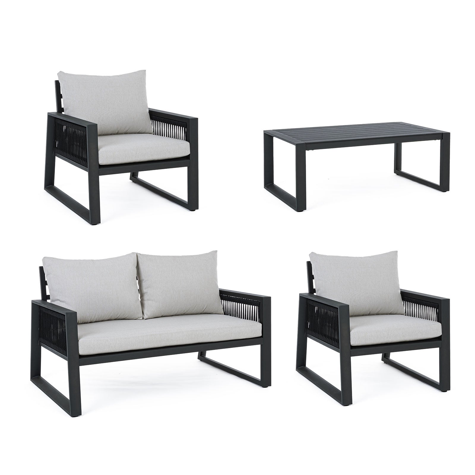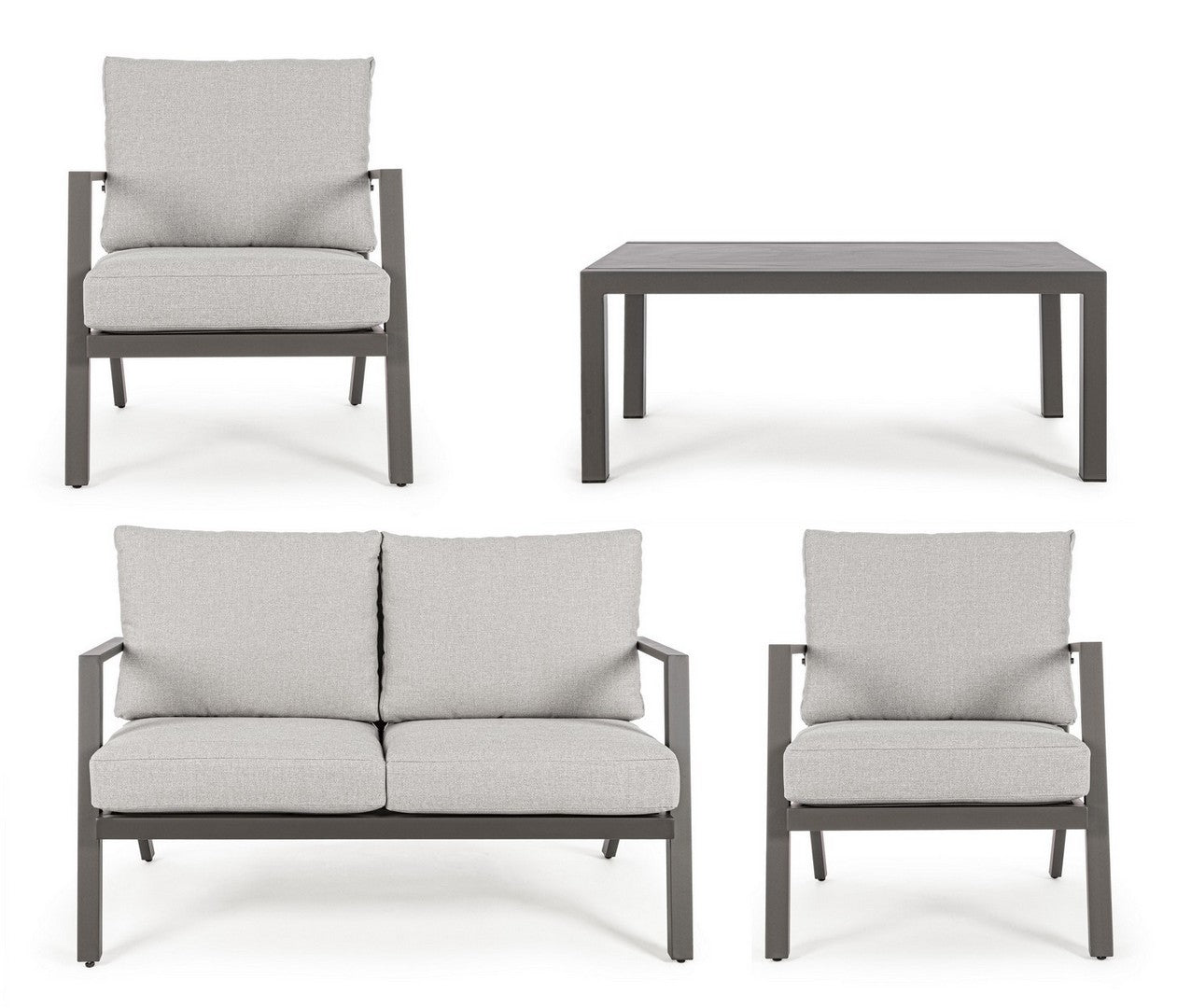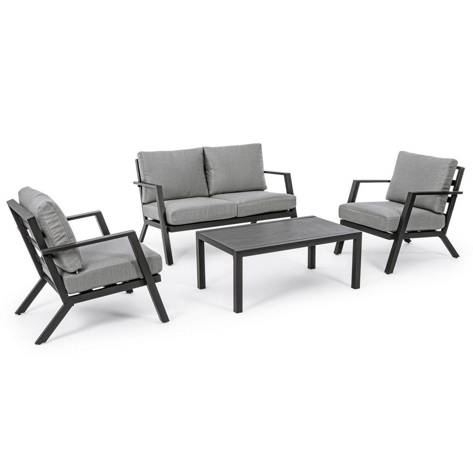 Salottino moderno per esterno "Ibiza" in alluminio con cuscini da giardino e veranda