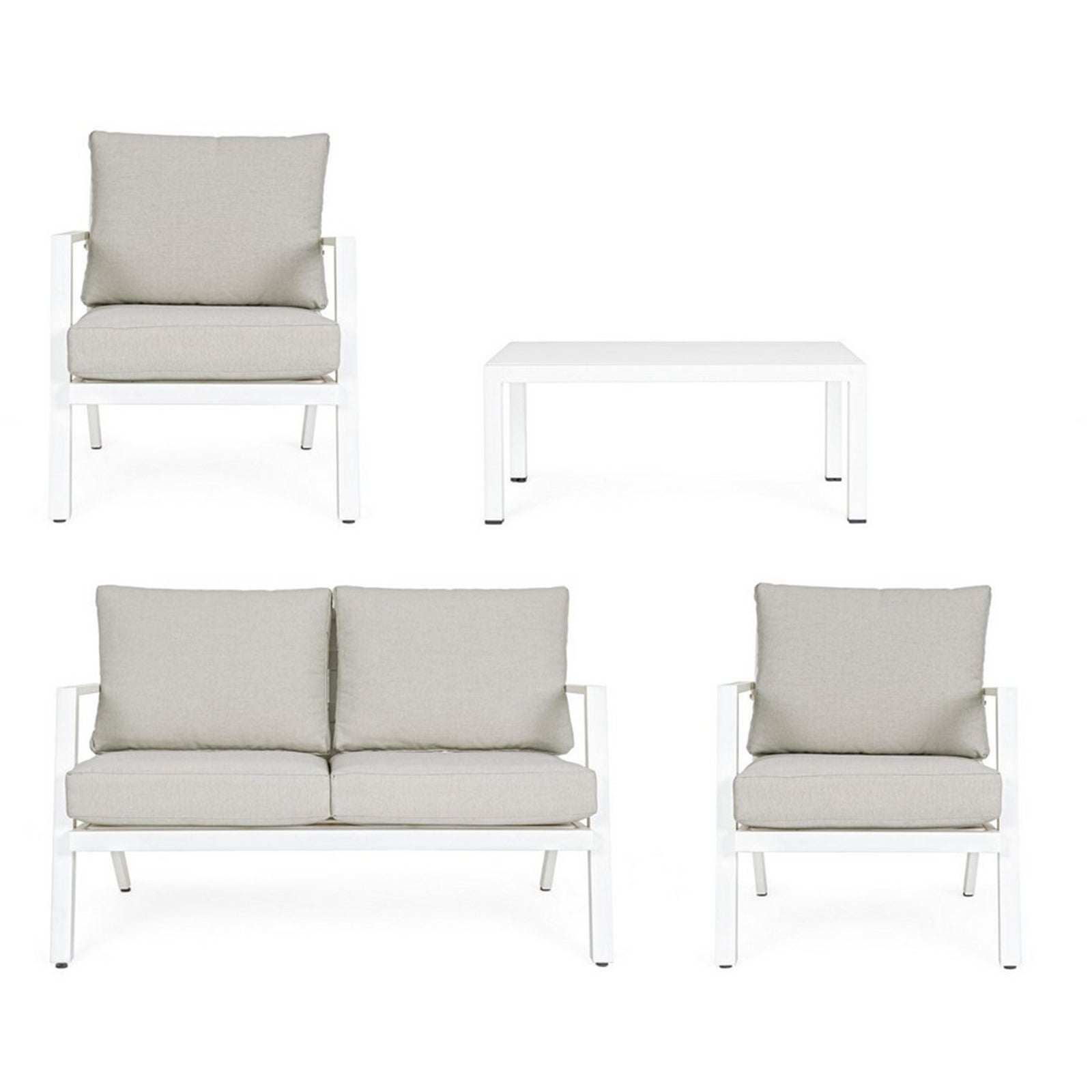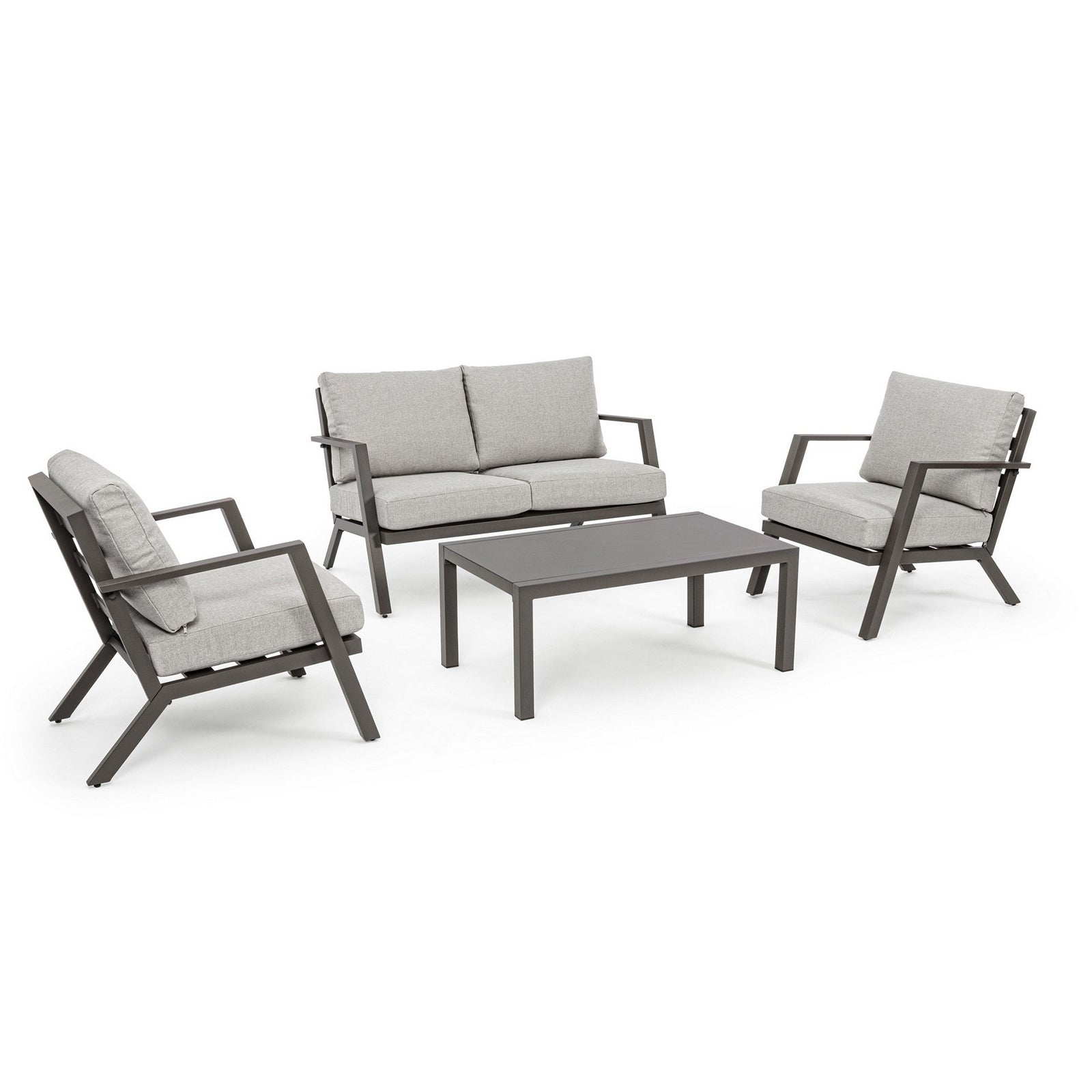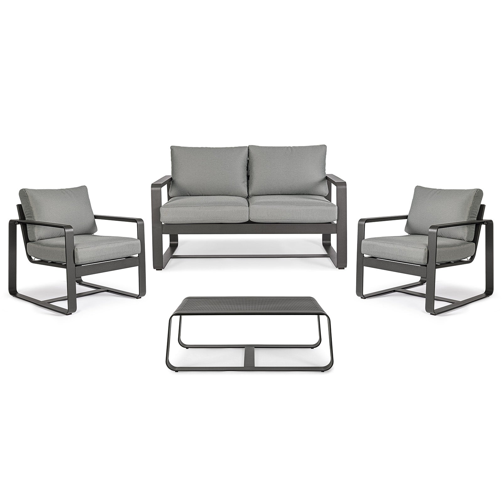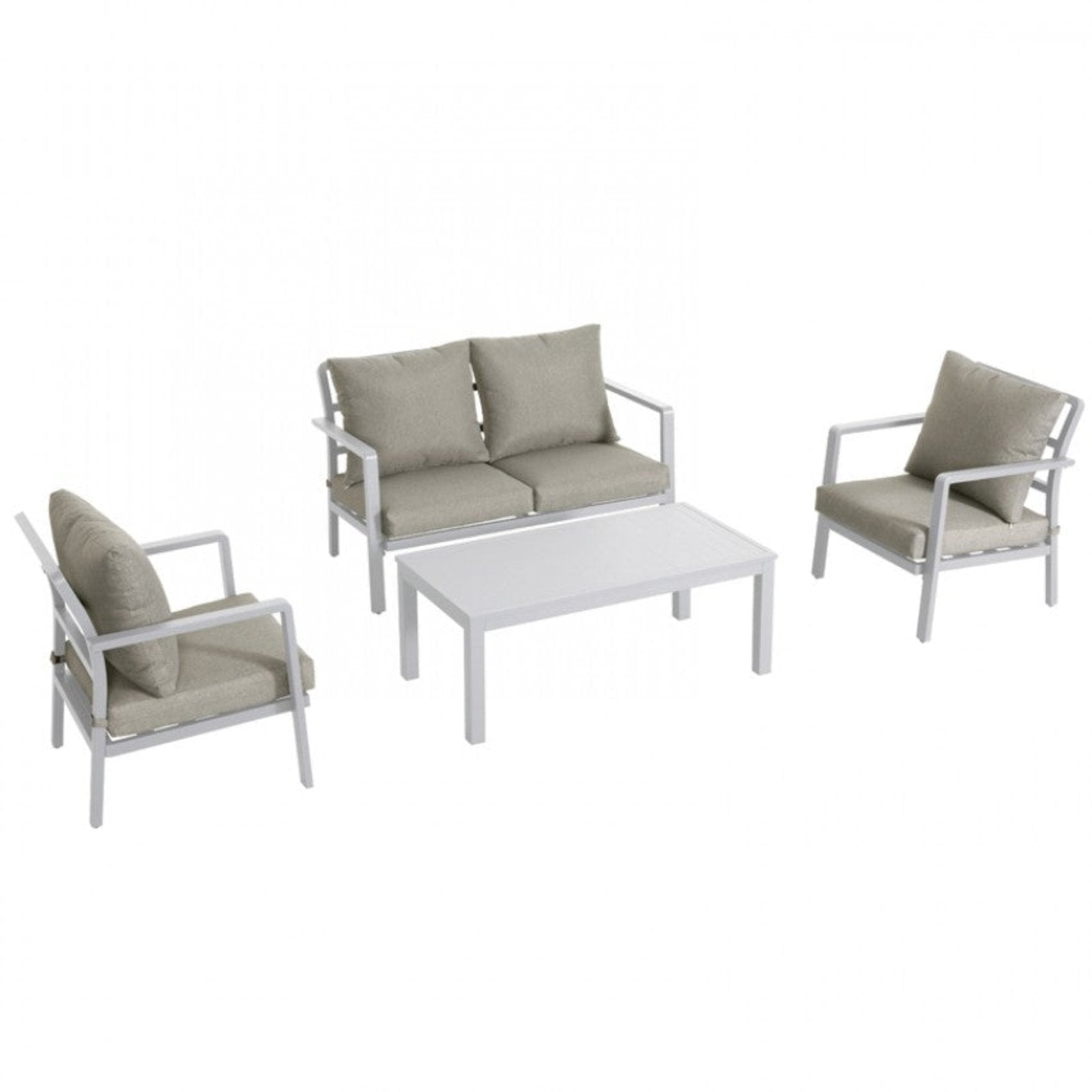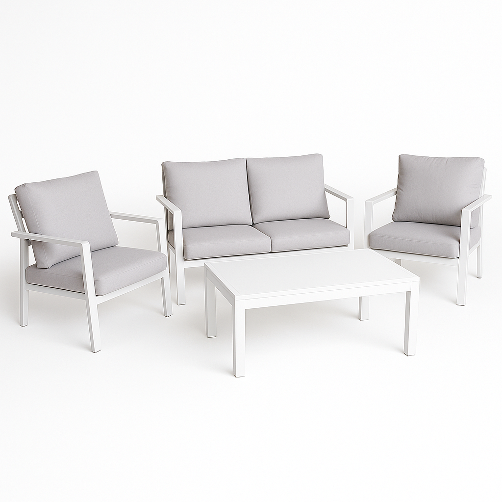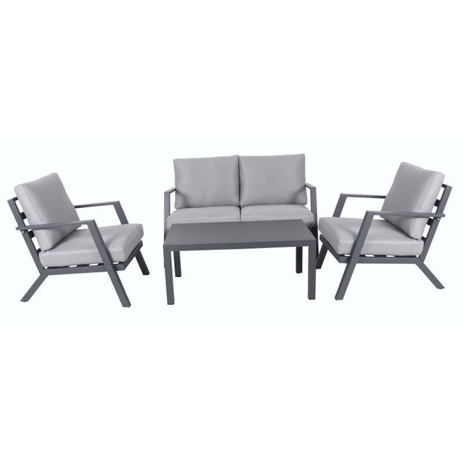 Salottino moderno per esterno "Ibiza" in alluminio con cuscini da giardino e veranda