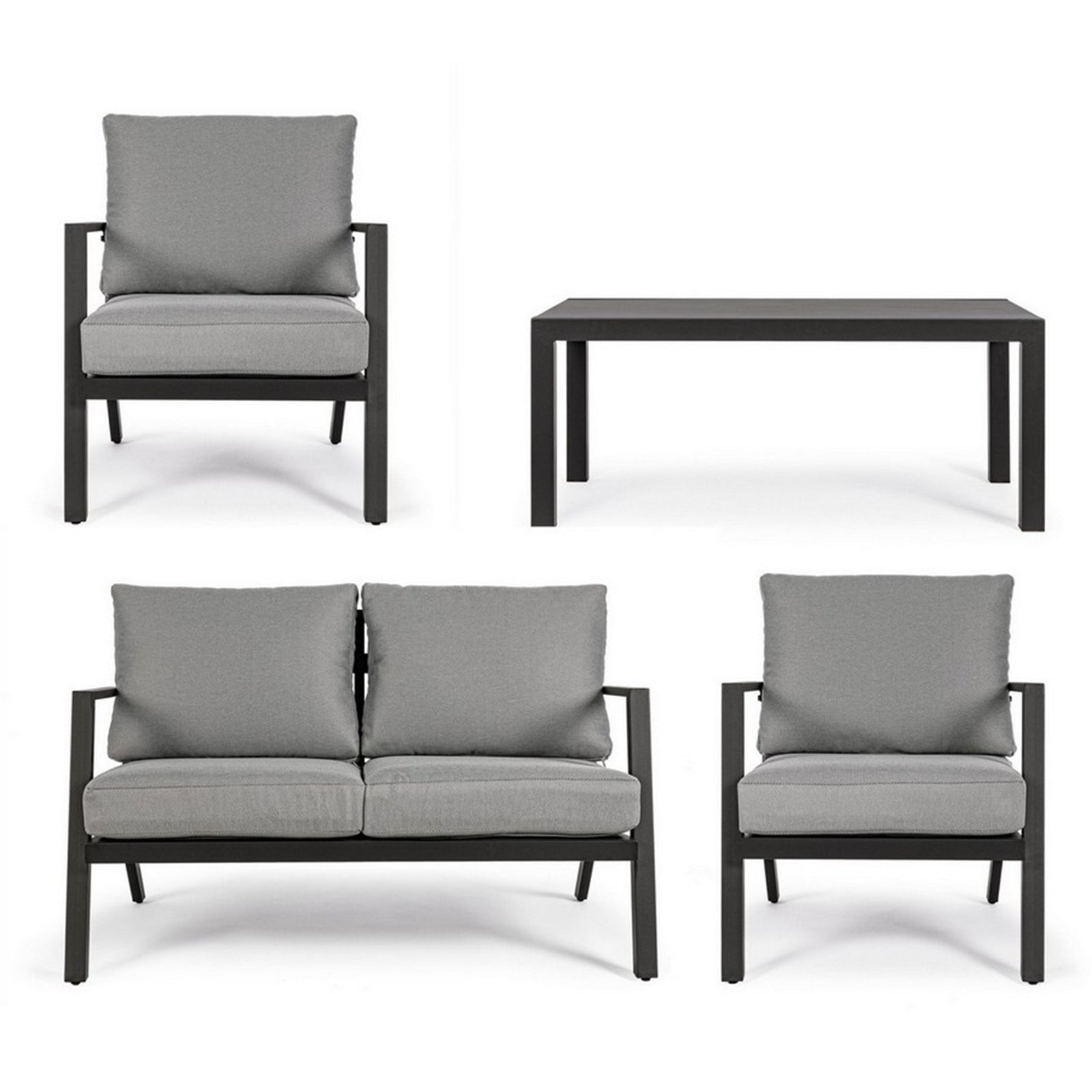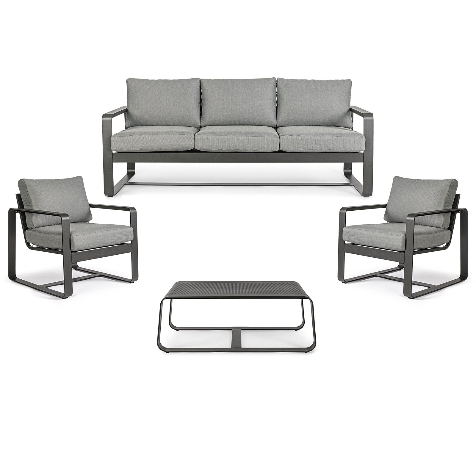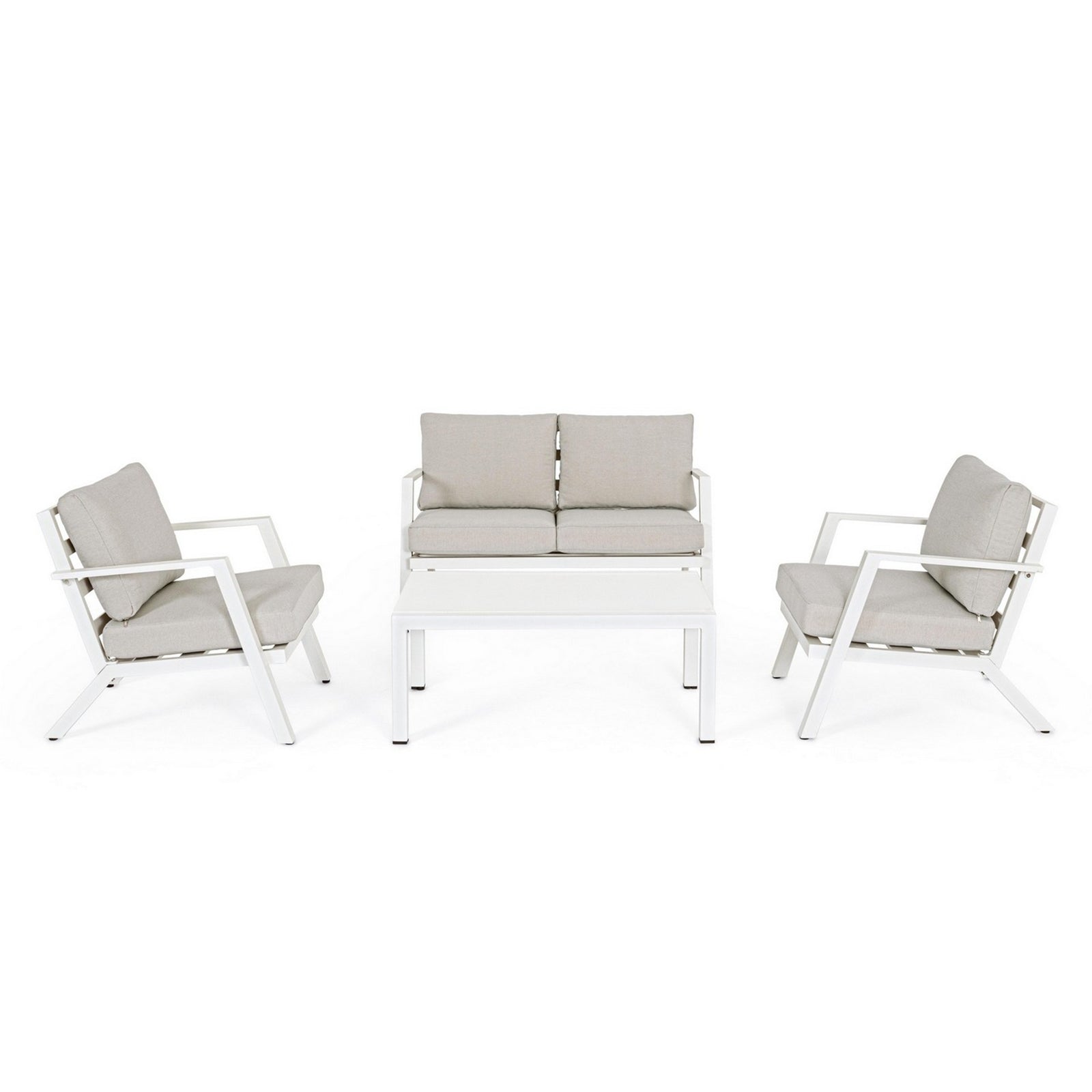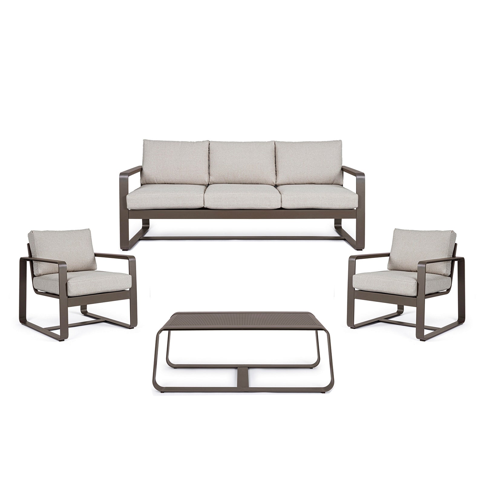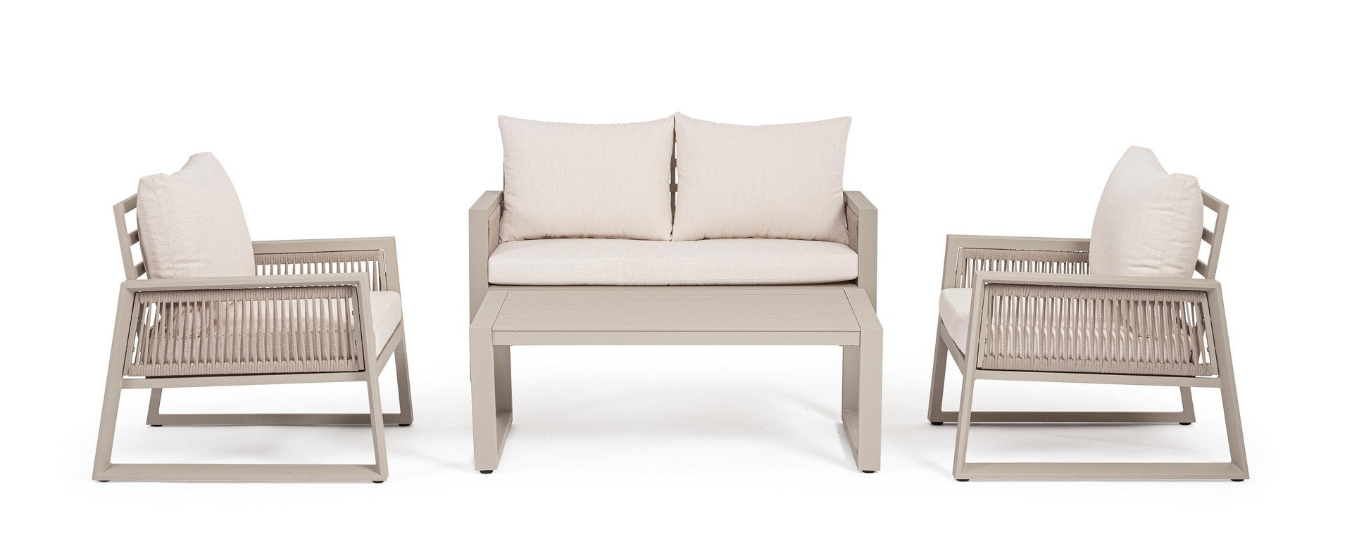 Salottino moderno per esterno "Ibiza" in alluminio con cuscini da giardino e veranda