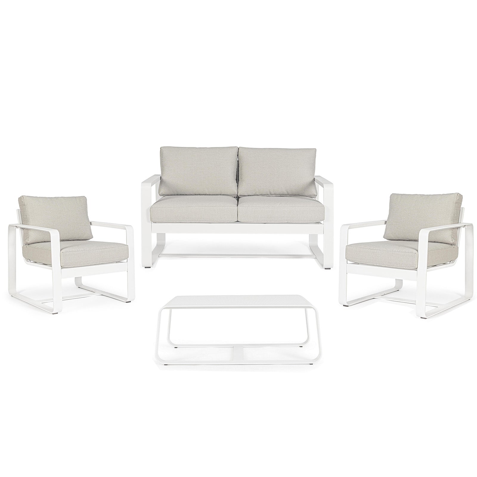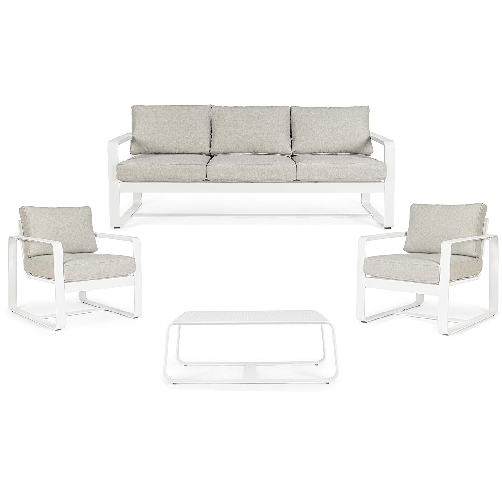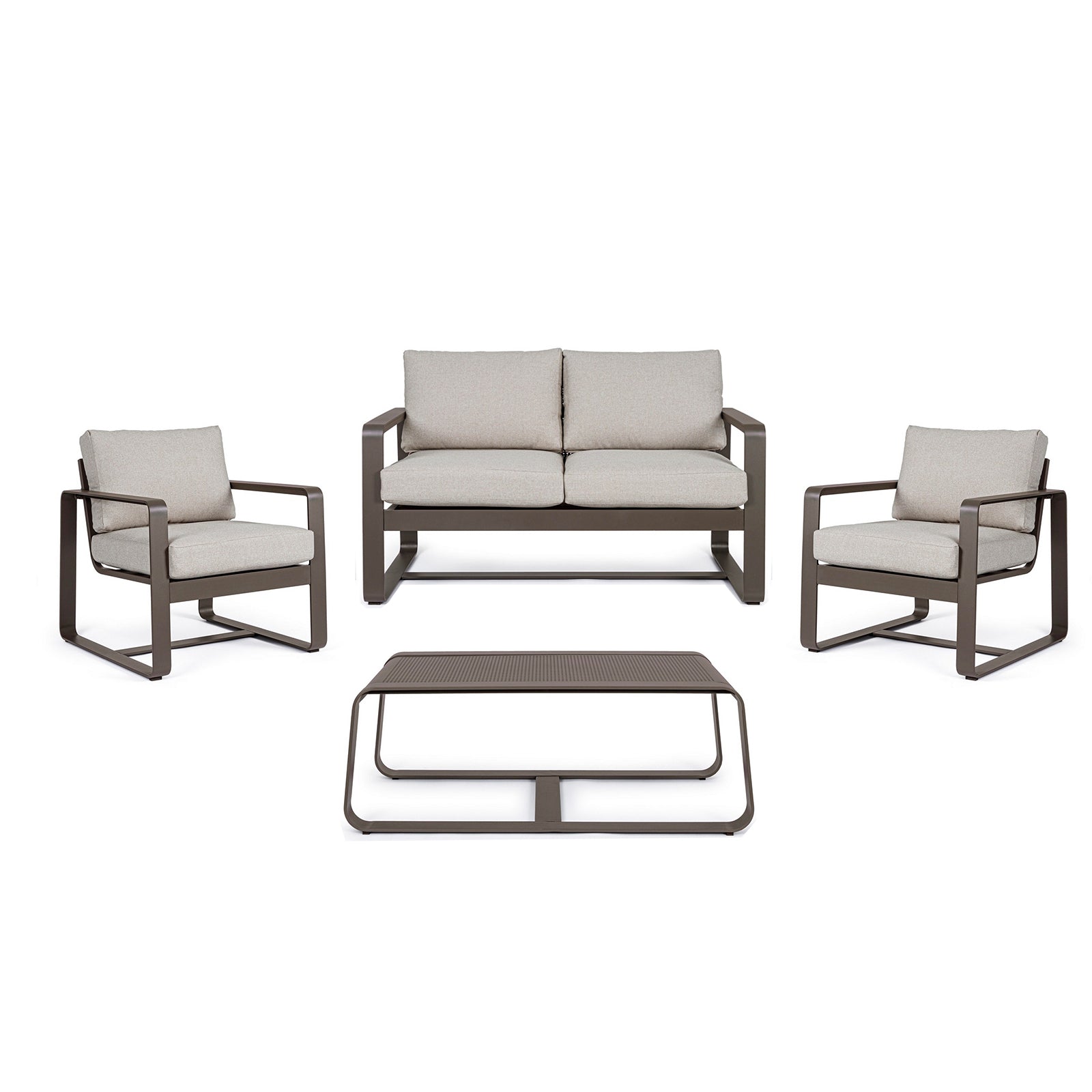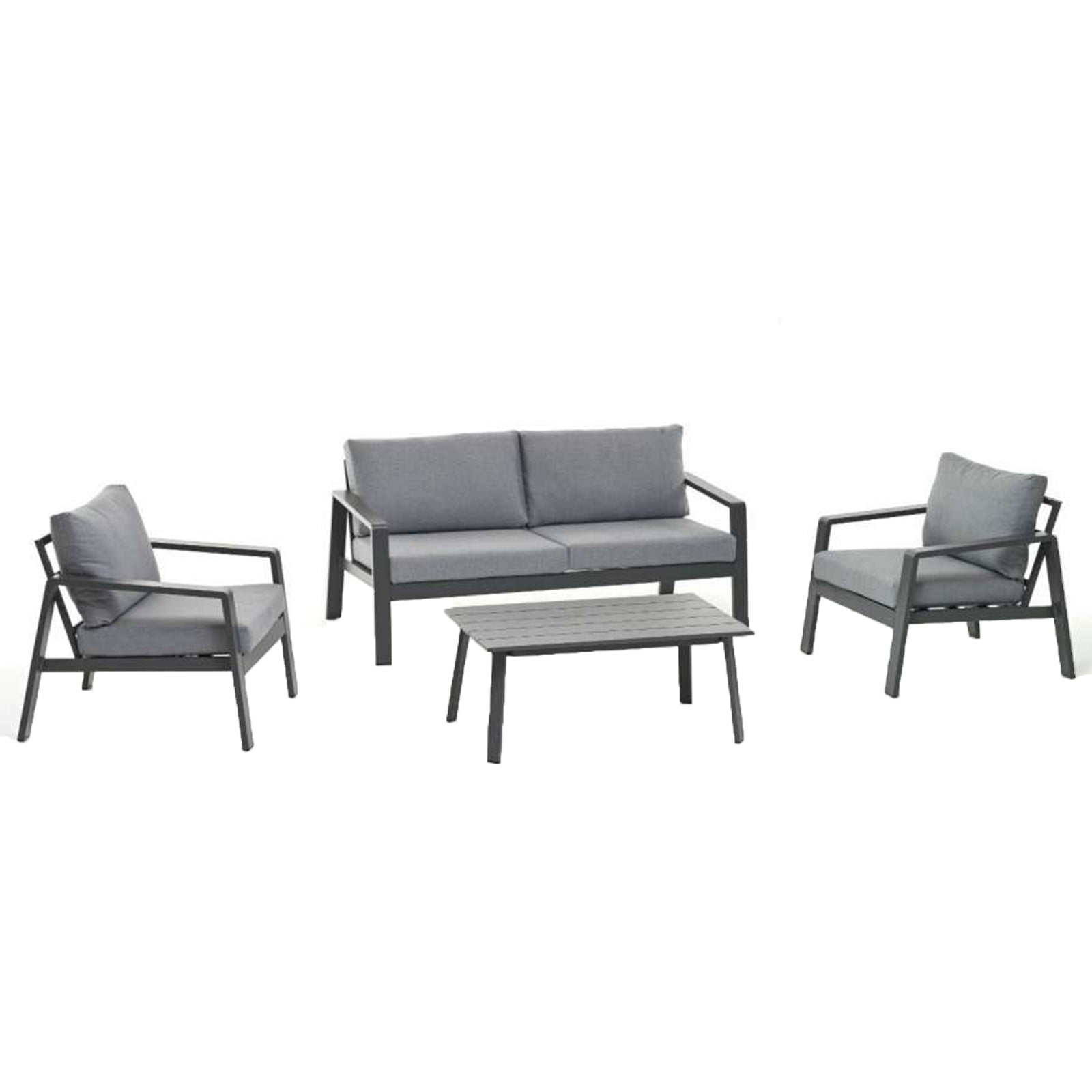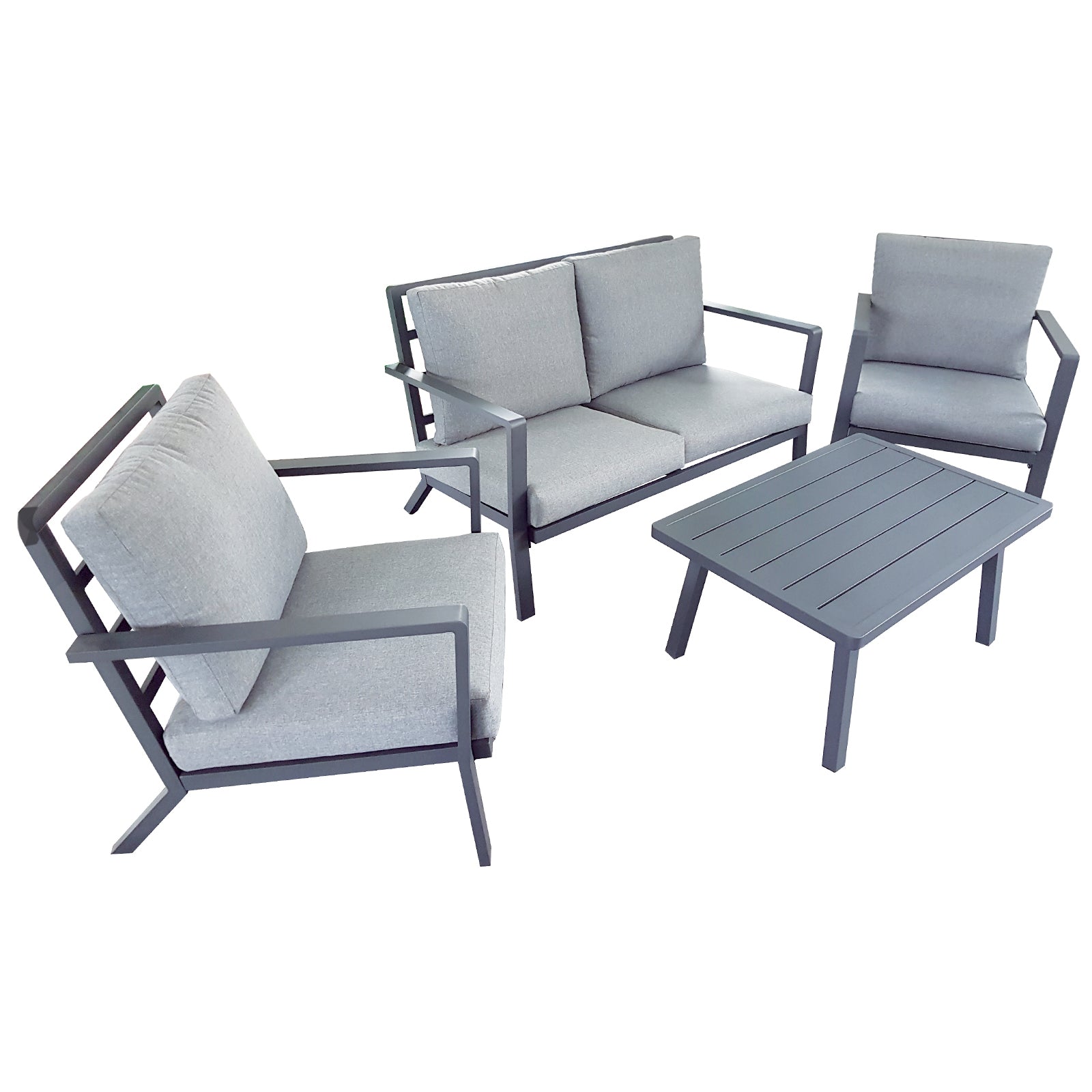 Salottino moderno per esterno "Ibiza" in alluminio con cuscini da giardino e veranda