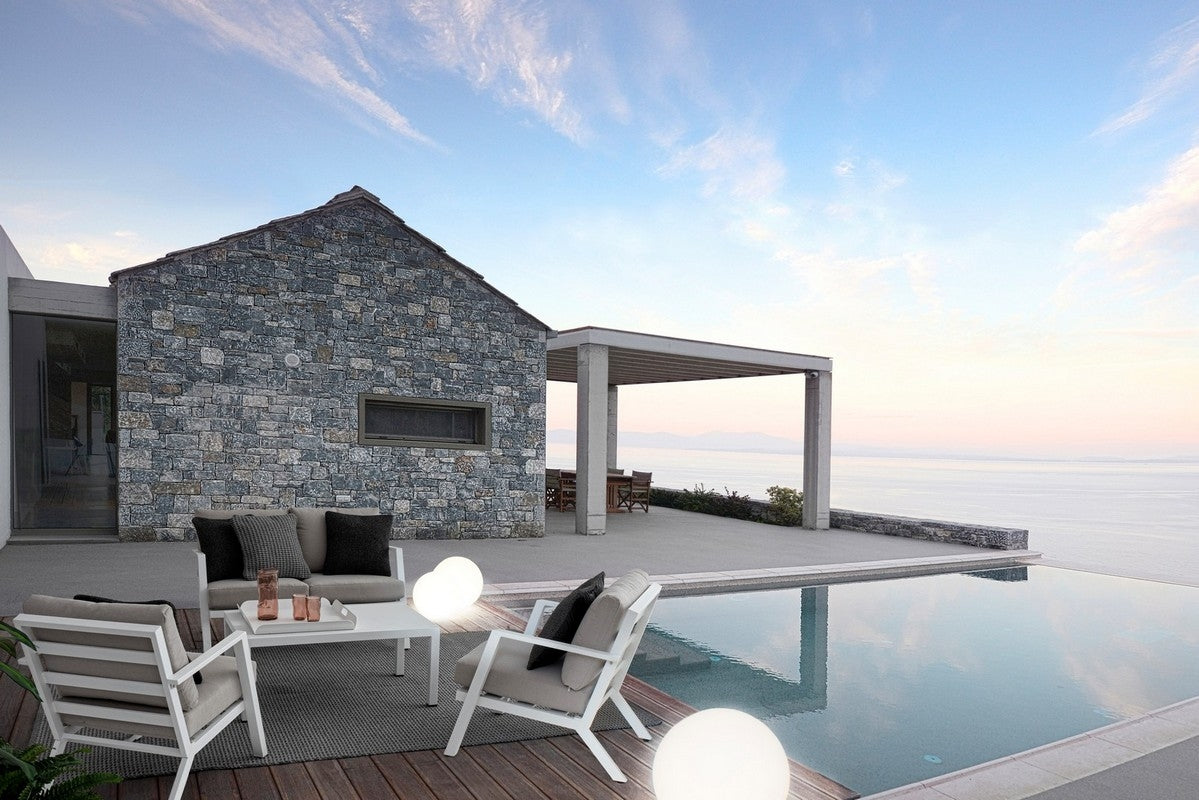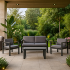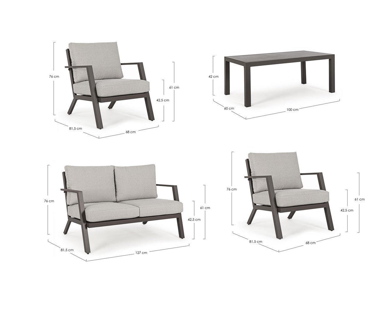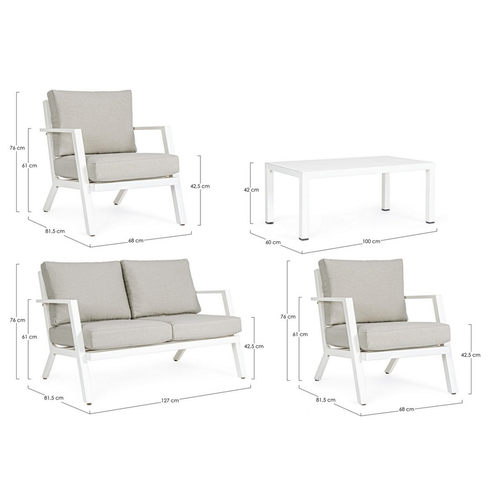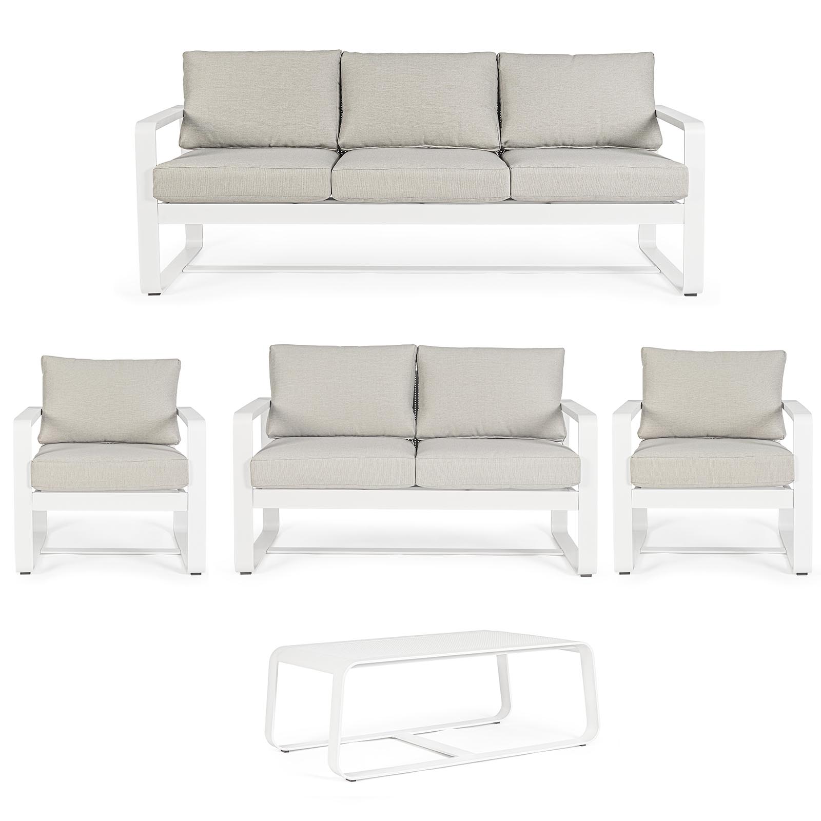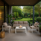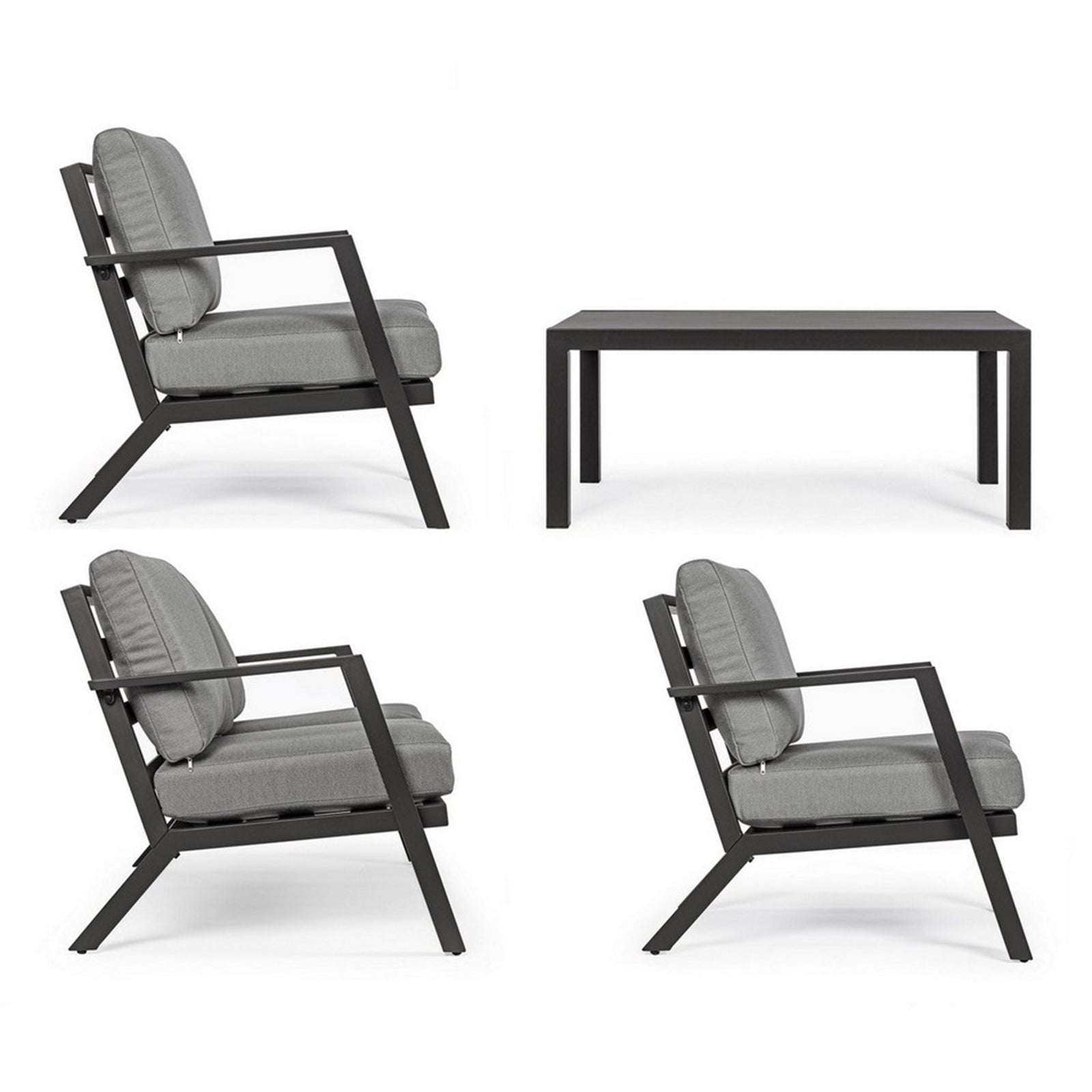 Salottino moderno per esterno "Ibiza" in alluminio con cuscini da giardino e veranda