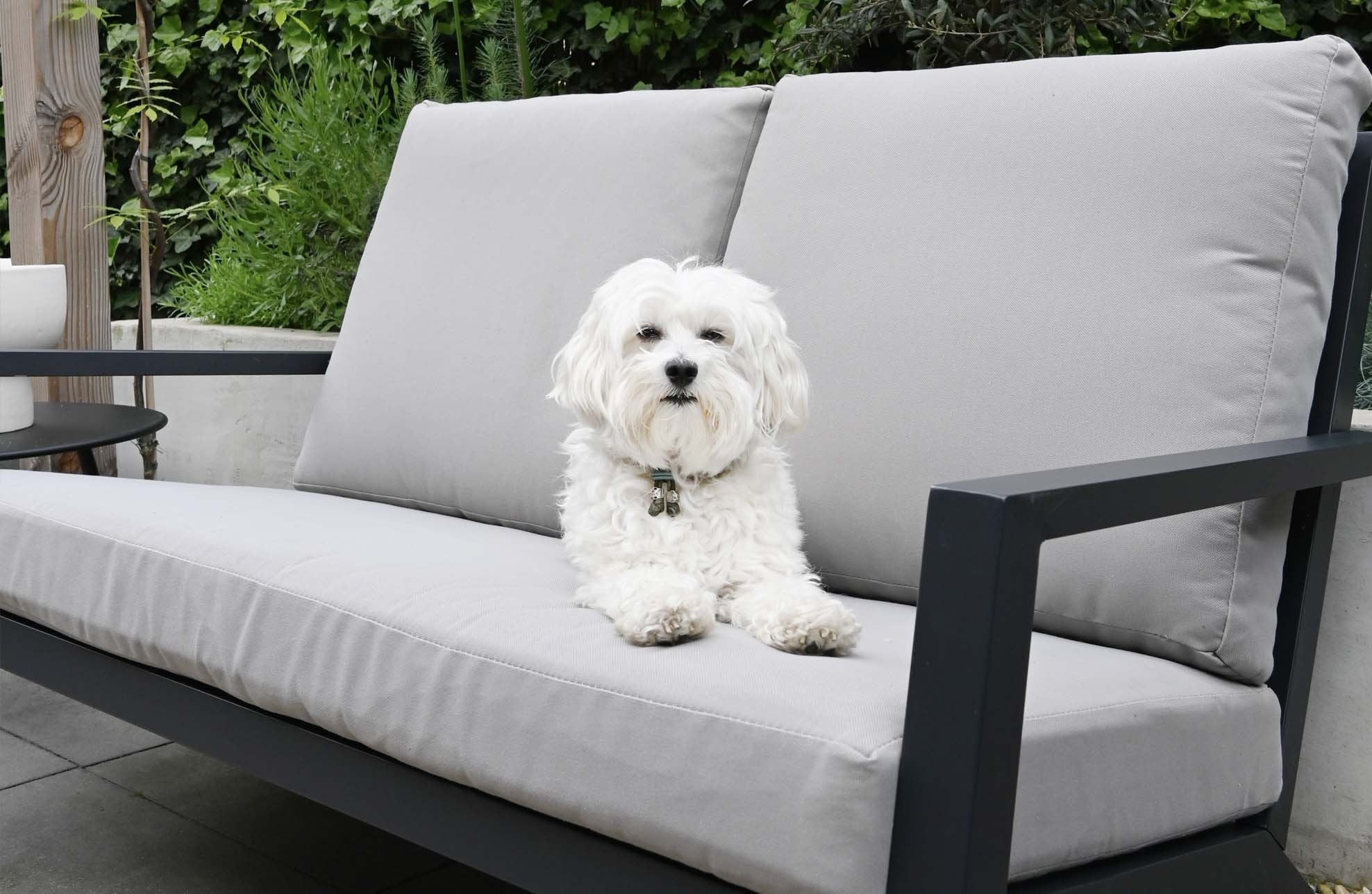 - Cuscini delle sedute sfoderabili con tessuto Spunpoly (100% poliestere) per esterno