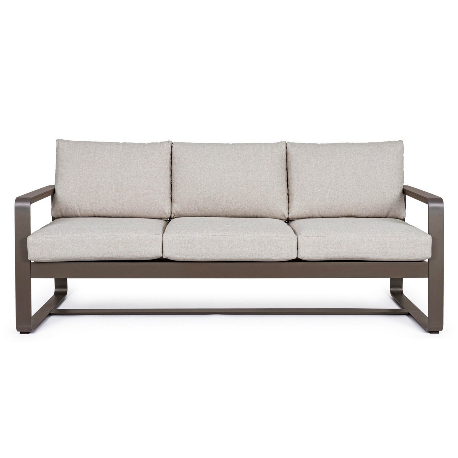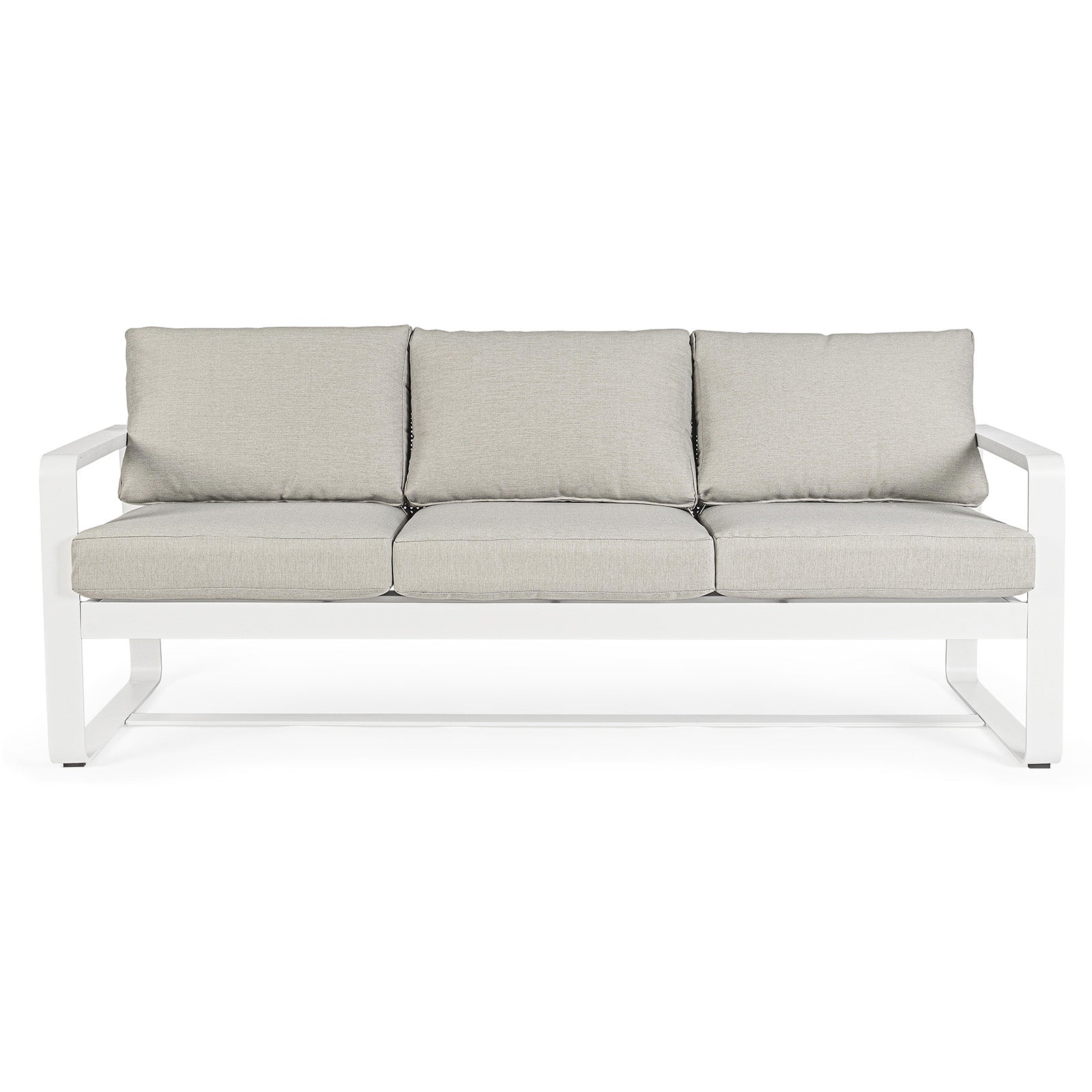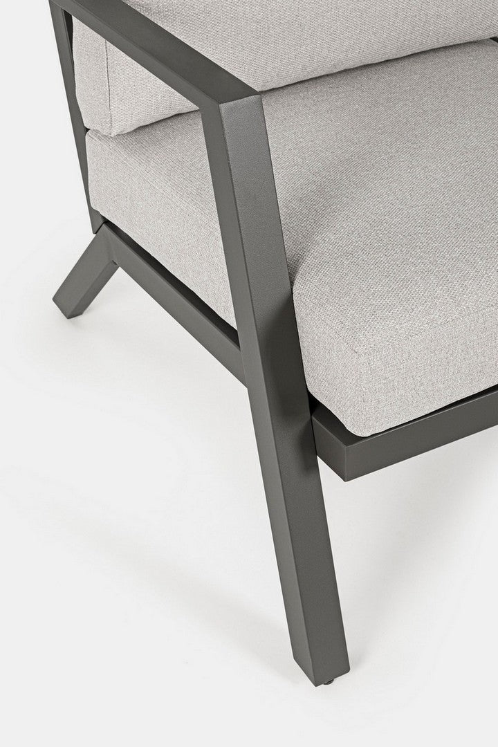 La struttura e le doghe che sostengono i cuscini sono realizzate in alluminio antiruggine verniciato opaco.