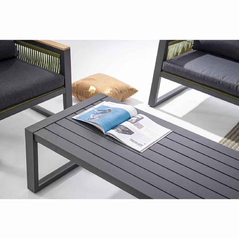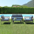 Salotto in alluminio verniciato opaco con comodissimi cuscini imbottiti da esterno.