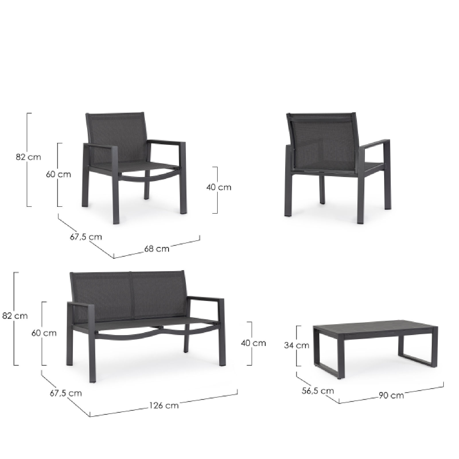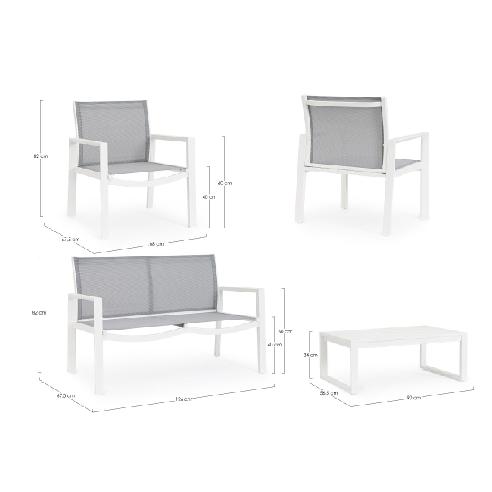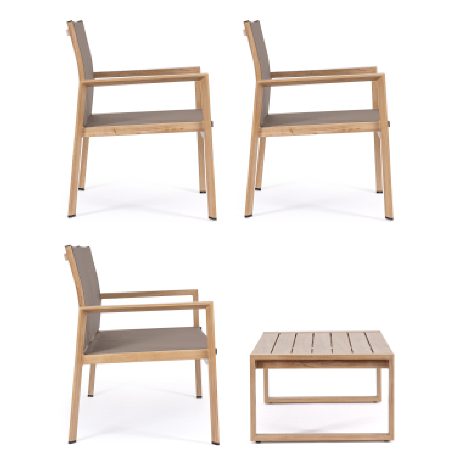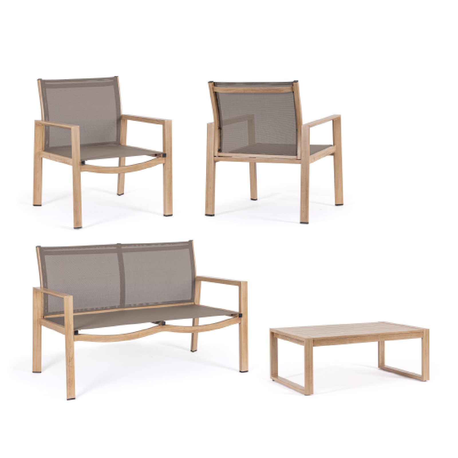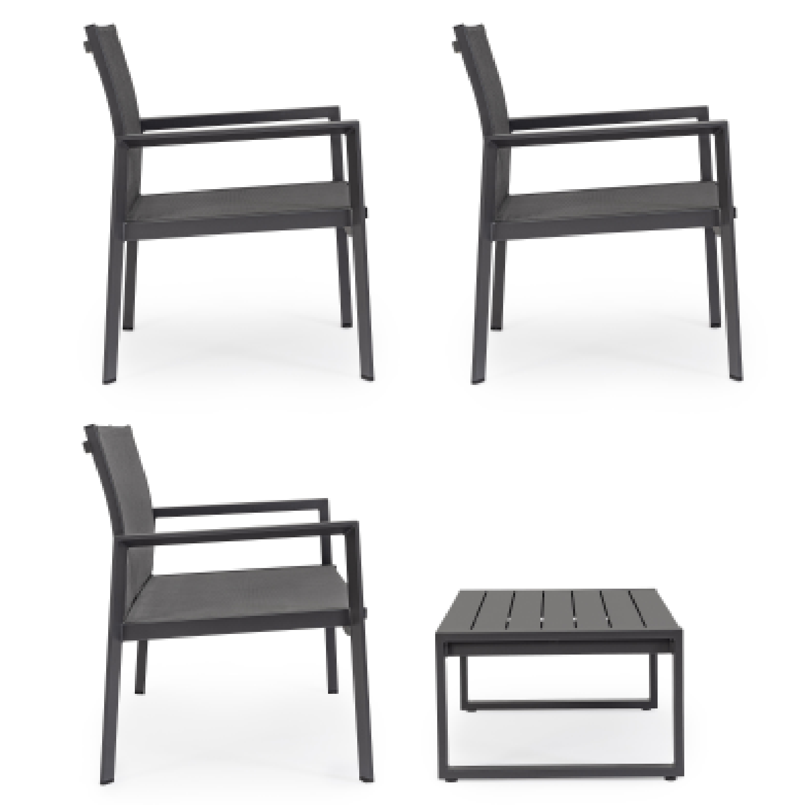 Salotto con poltrone e tavolino "Kallen" struttura in alluminio per veranda e giardino