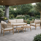 Salotto con poltrone e tavolino "Thiago" struttura in legno di acacia per veranda e giardino