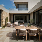 Le sedute ampie e i cuscini morbidi offrono un comfort ideale per momenti di conversazione, lettura o relax all’aria aperta.