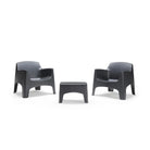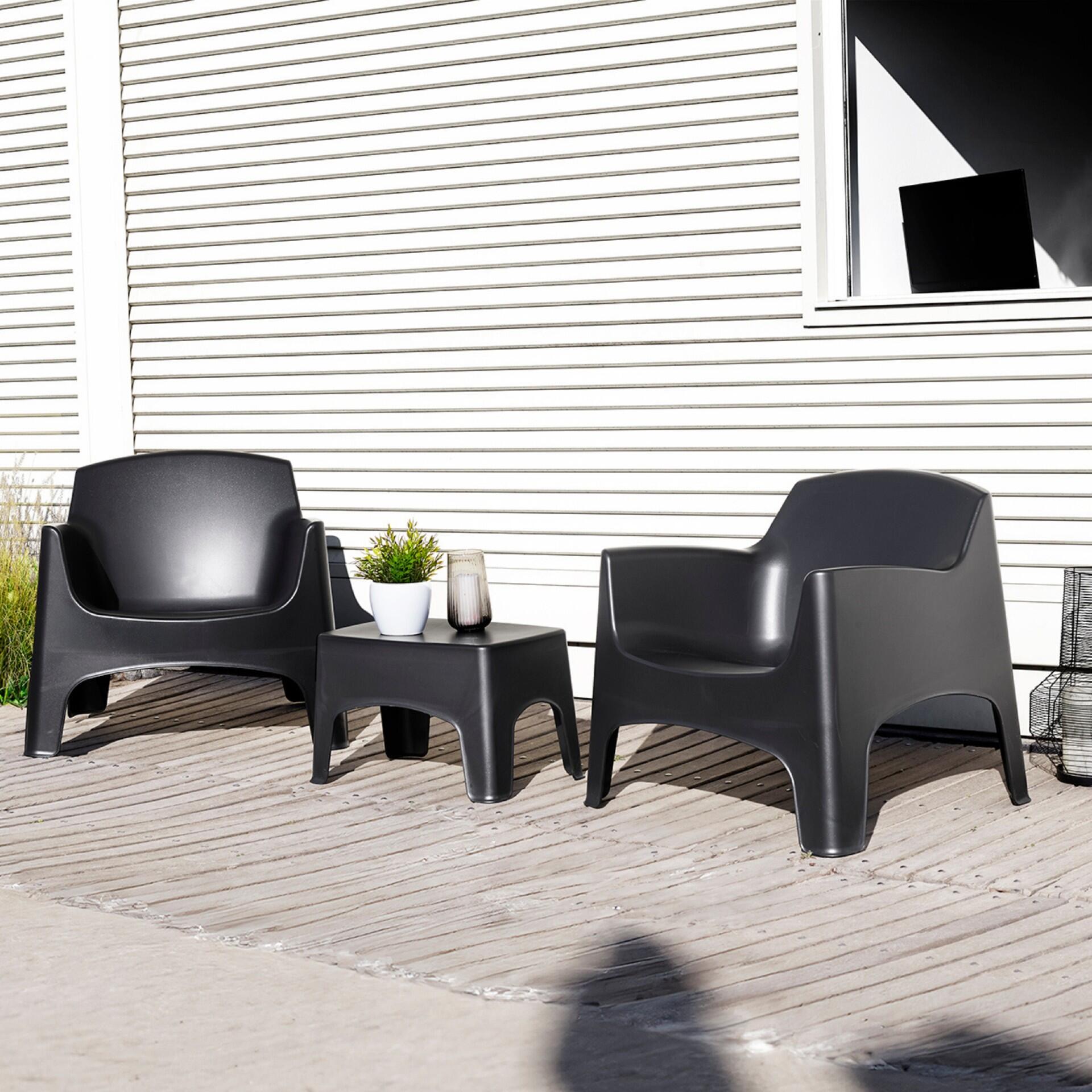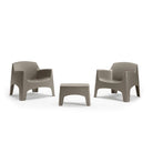 Composto da due comode poltrone e un tavolino coordinato, offre una soluzione compatta ma confortevole per godersi momenti di relax all’aria aperta, dalla colazione al tramonto.