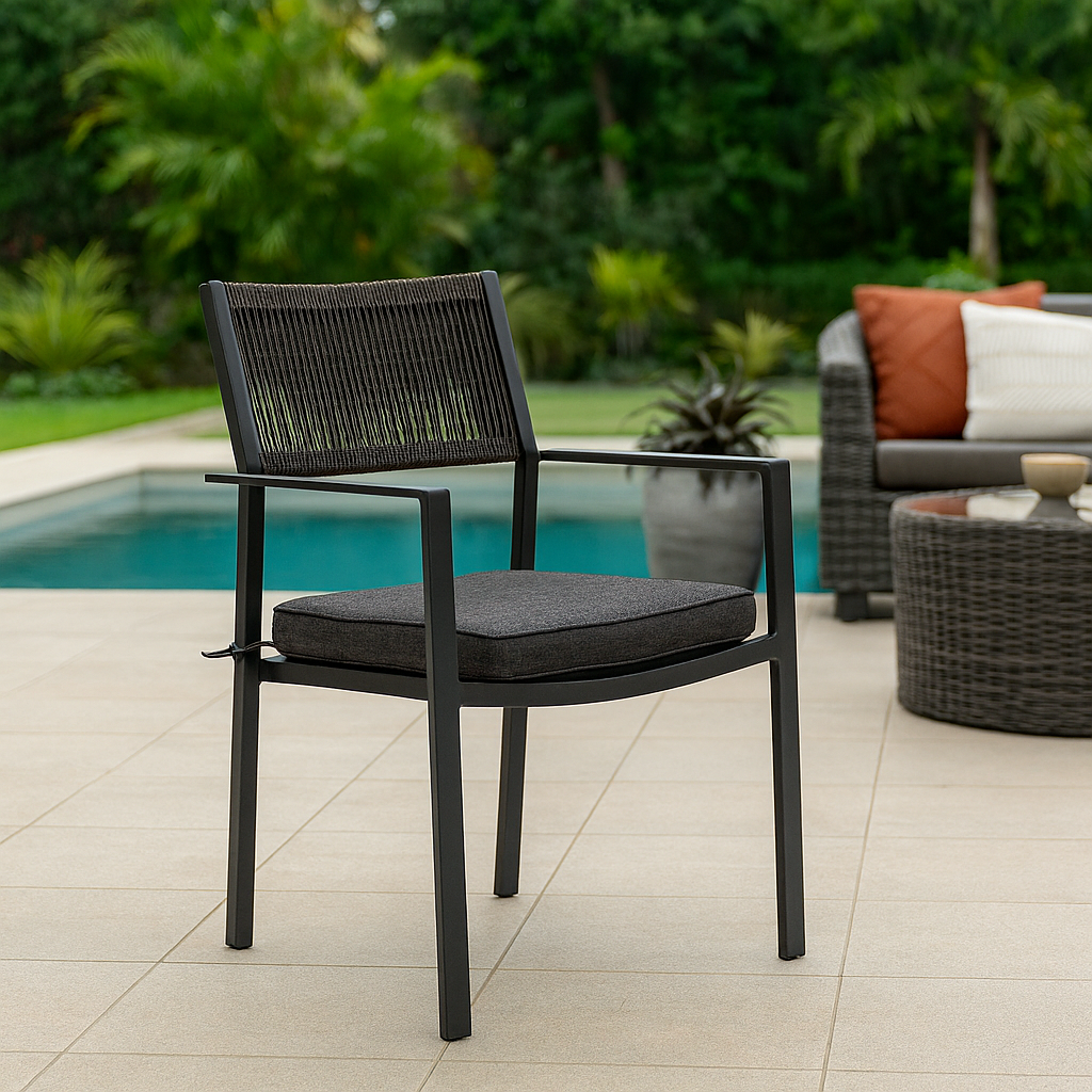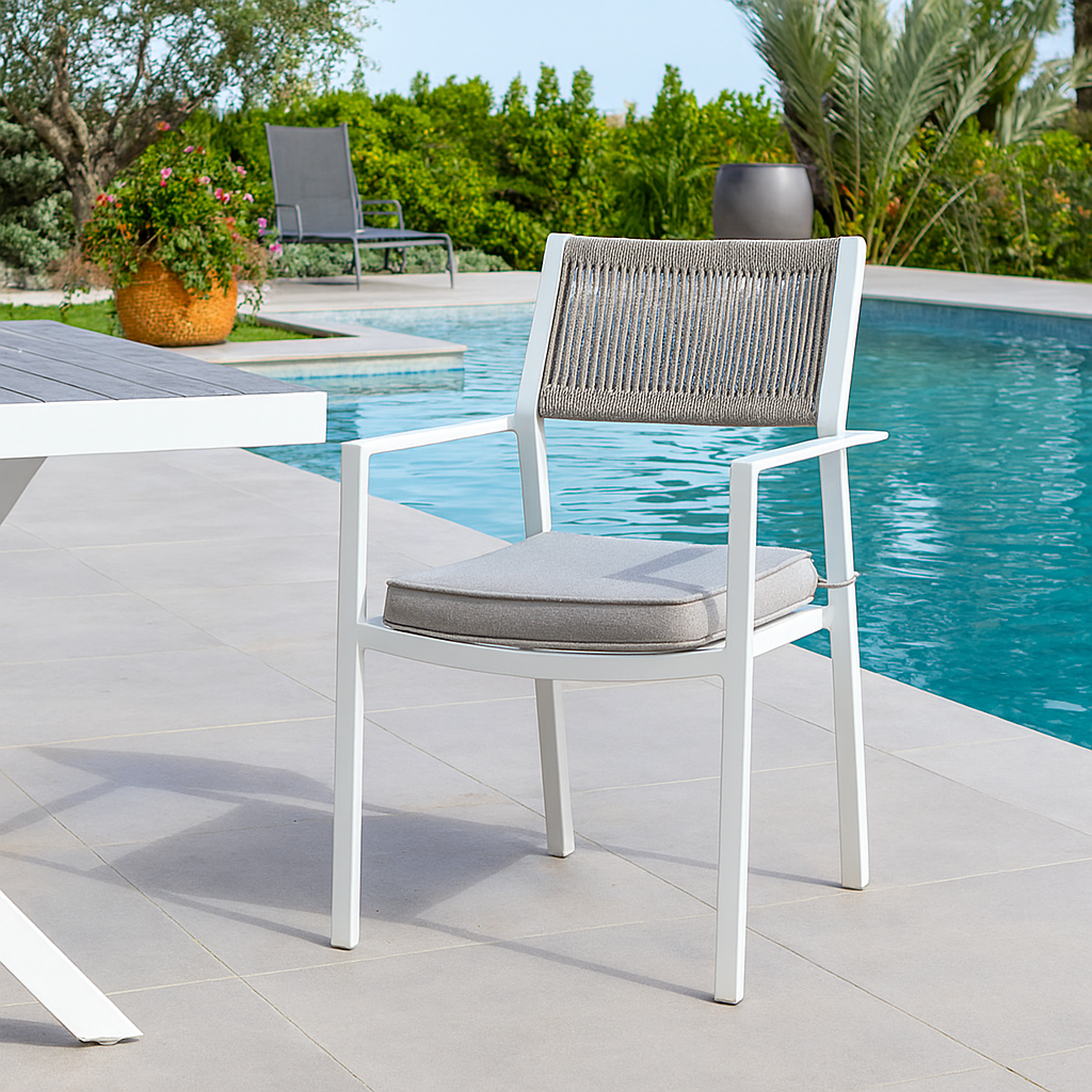 La sedia "Valencia" unisce stile e resistenza, rendendola perfetta per arredare giardini, terrazze, bar e ristoranti.
