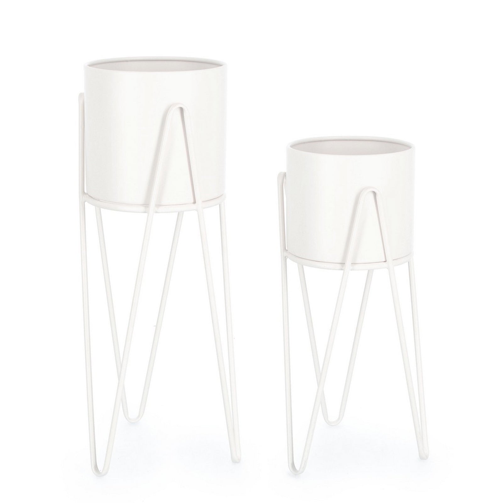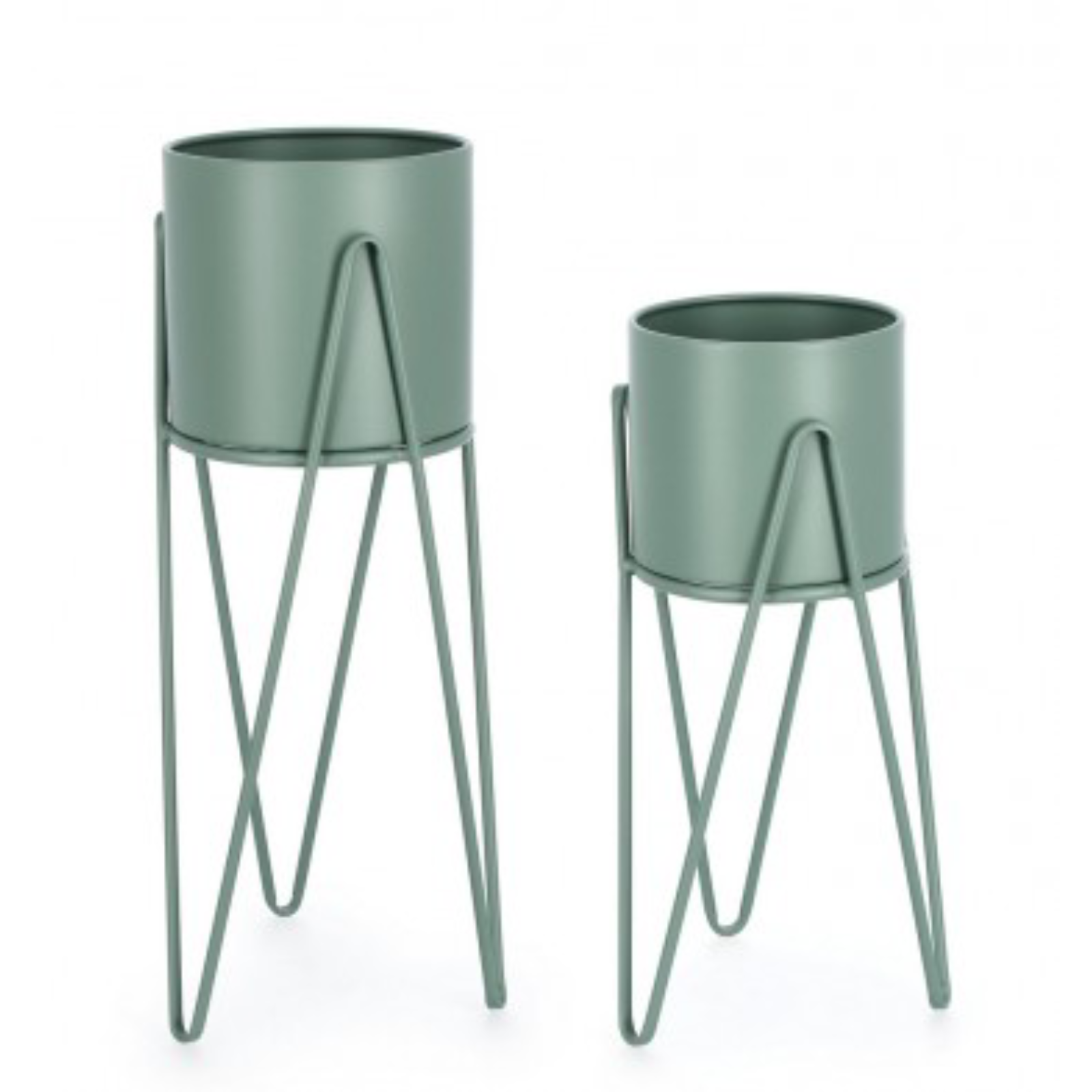 Il Set 2 PortaFiore Madelyn Tondo presenta un design tondo ed è realizzato in acciaio verniciato a polvere epossidica, un materiale resistente e adatto sia per l'uso interno che esterno.