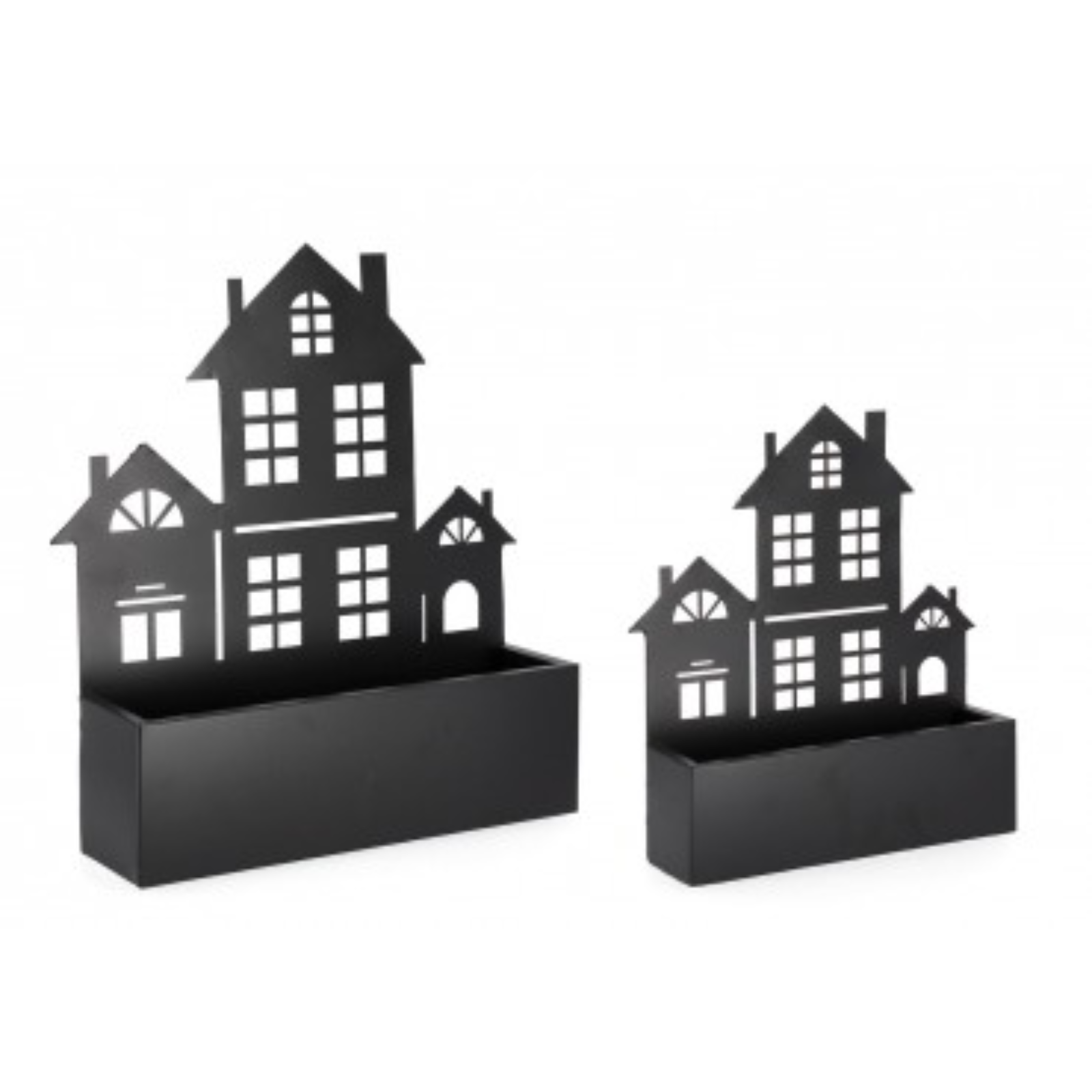 Set 2 PortaFiore Rosalba Casa Nero in acciaio per uso interno ed esterno.
