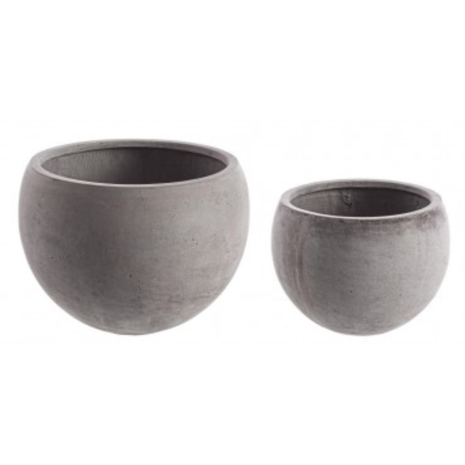 Questo set comprende due vasi realizzati in fibra di vetro e argilla colorata, con un particolare tono grigio che richiama l'aspetto del cemento.