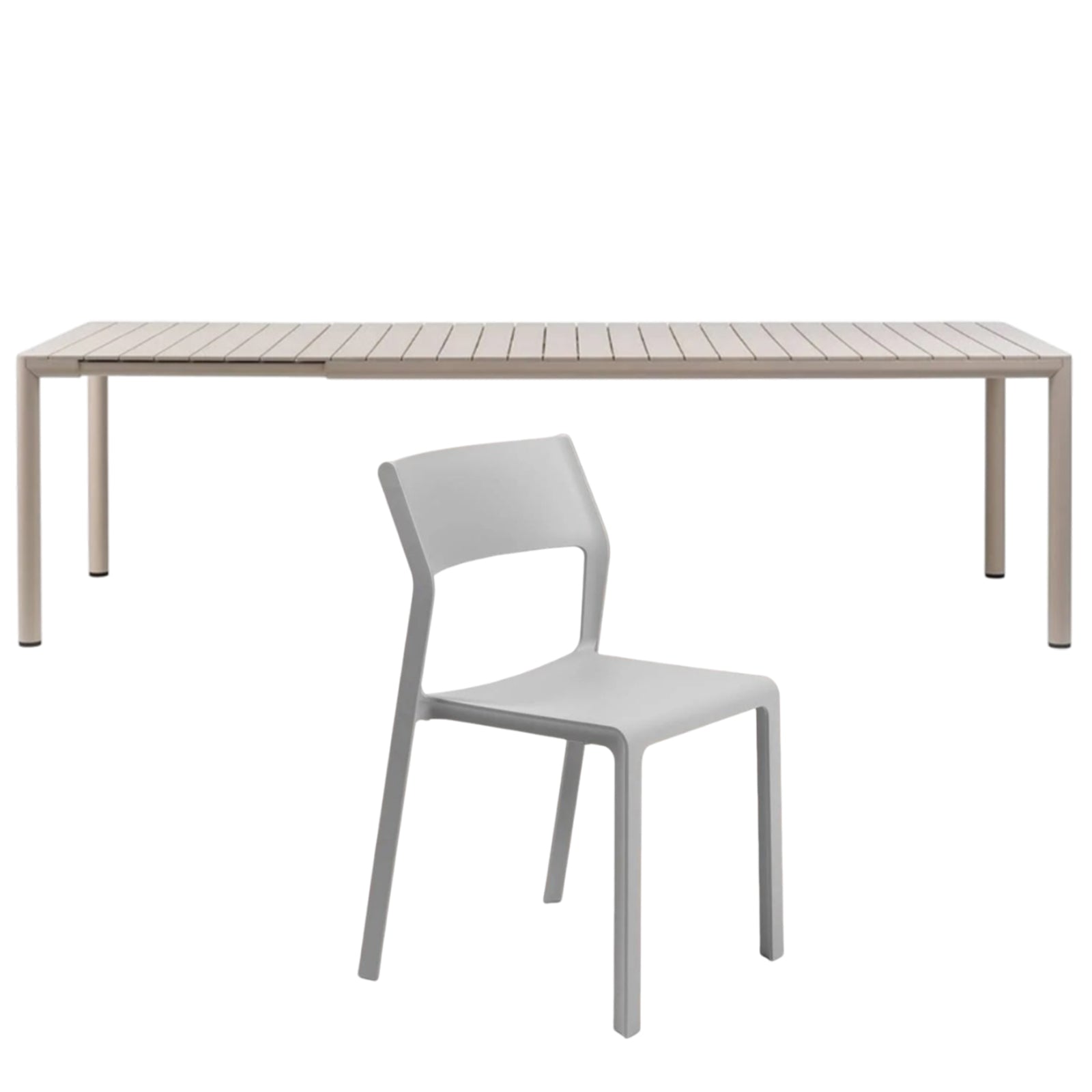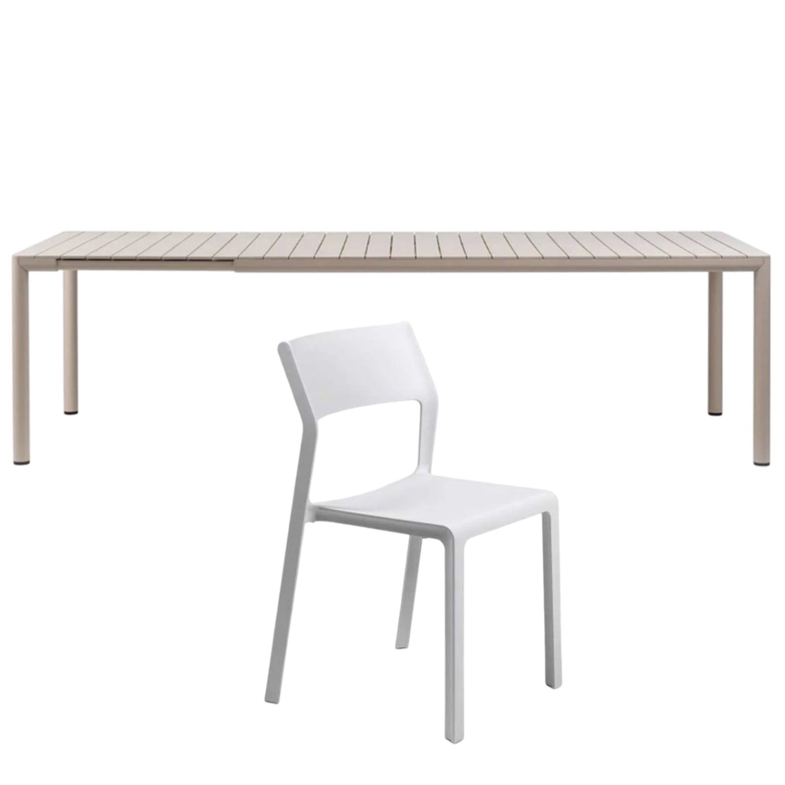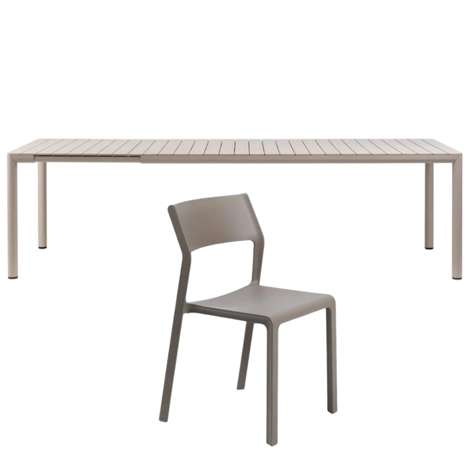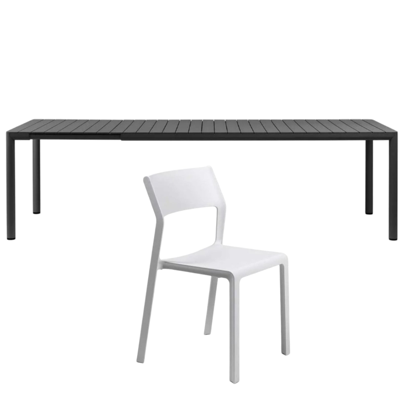 Il Set Tavolo Tevere 150 Extensible con 6 Sedie Trill Bistrot di Nardi è la soluzione perfetta per arredare con stile il tuo spazio outdoor. Il tavolo, estendibile da 150 cm a 210 cm, è progettato per ospitare comodamente 6/8 persone, mentre le sedie Trill Bistrot offrono un equilibrio perfetto tra design, resistenza e comfort.