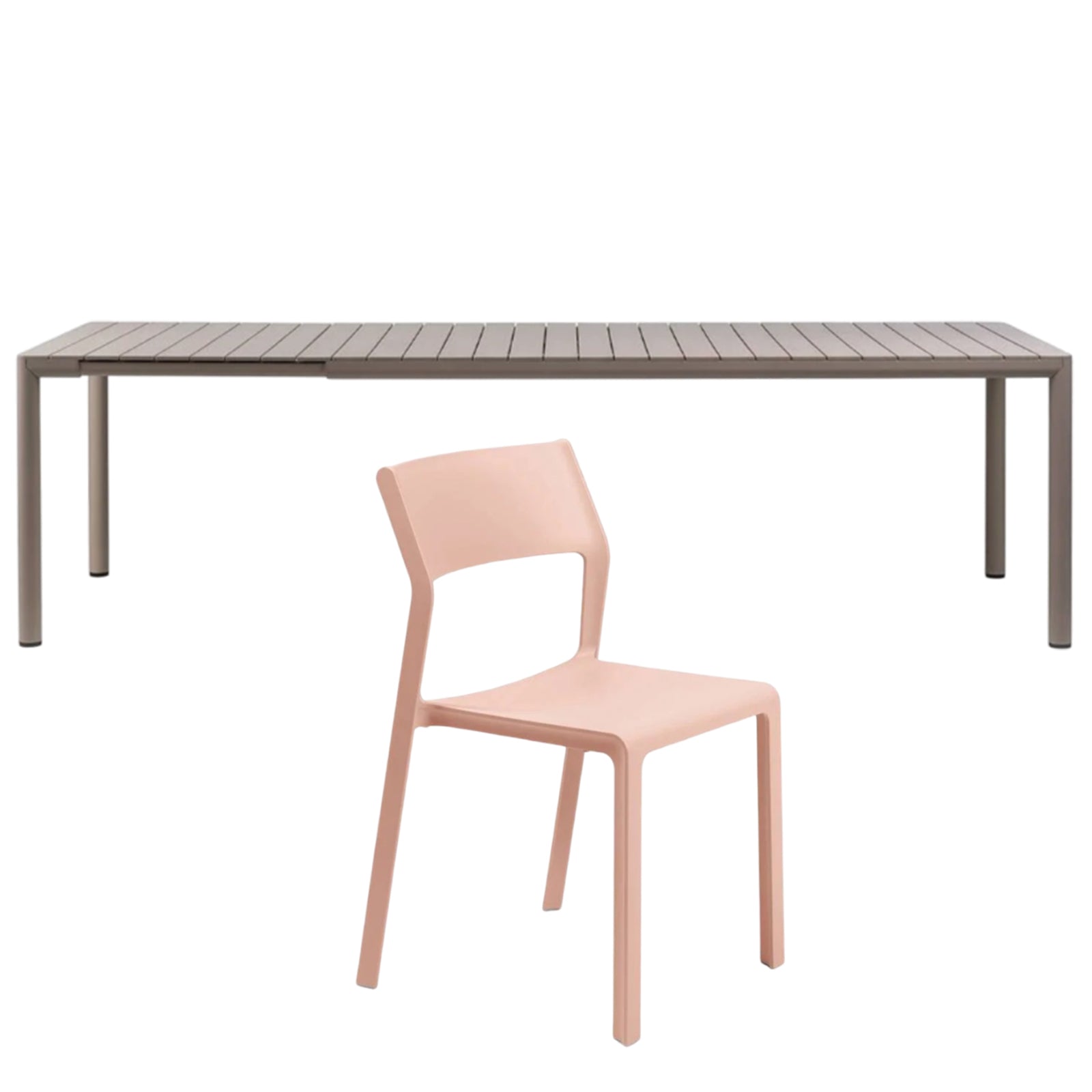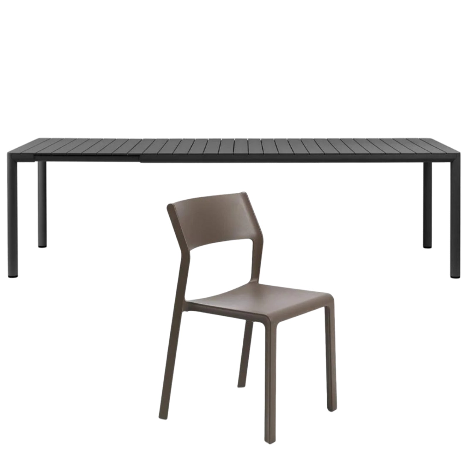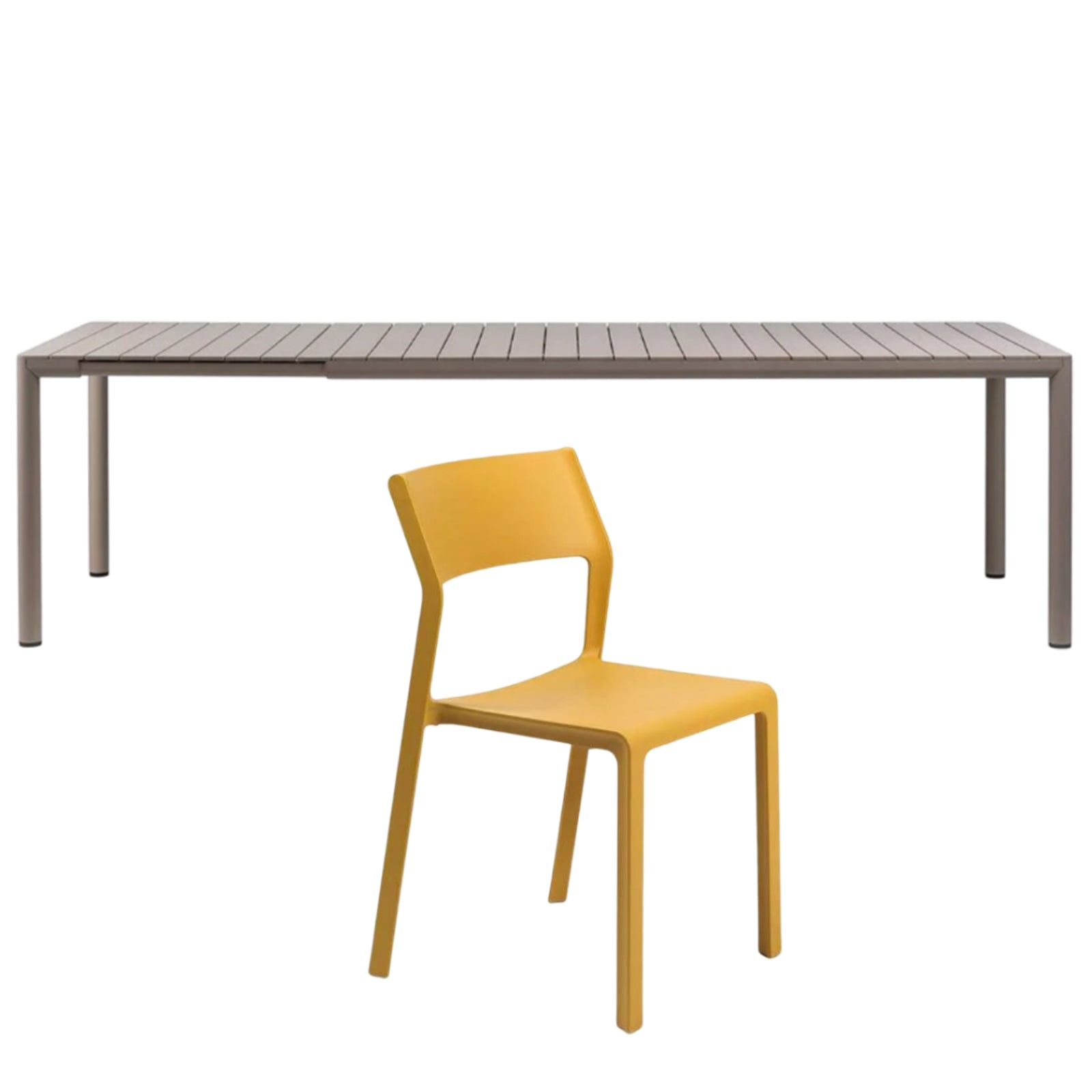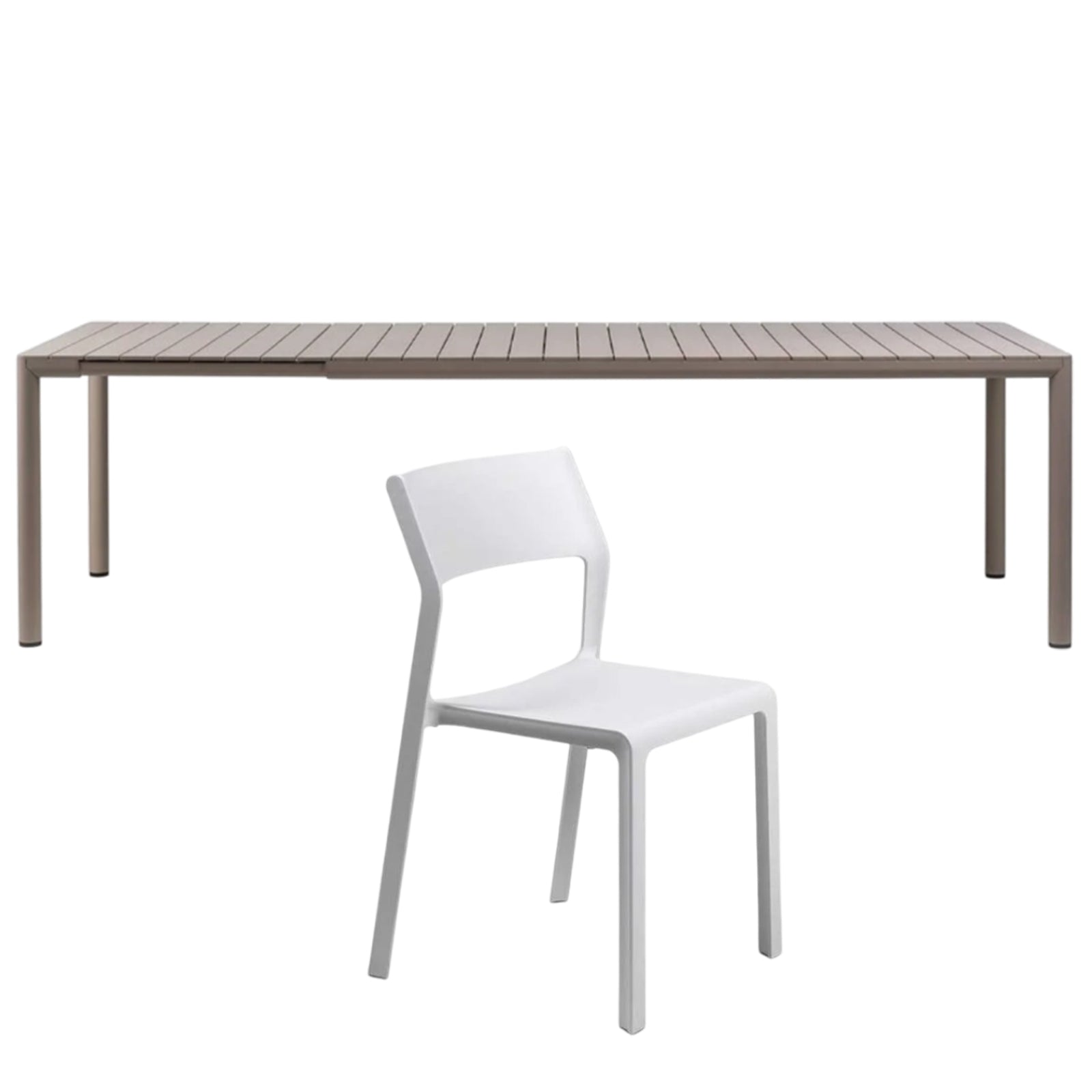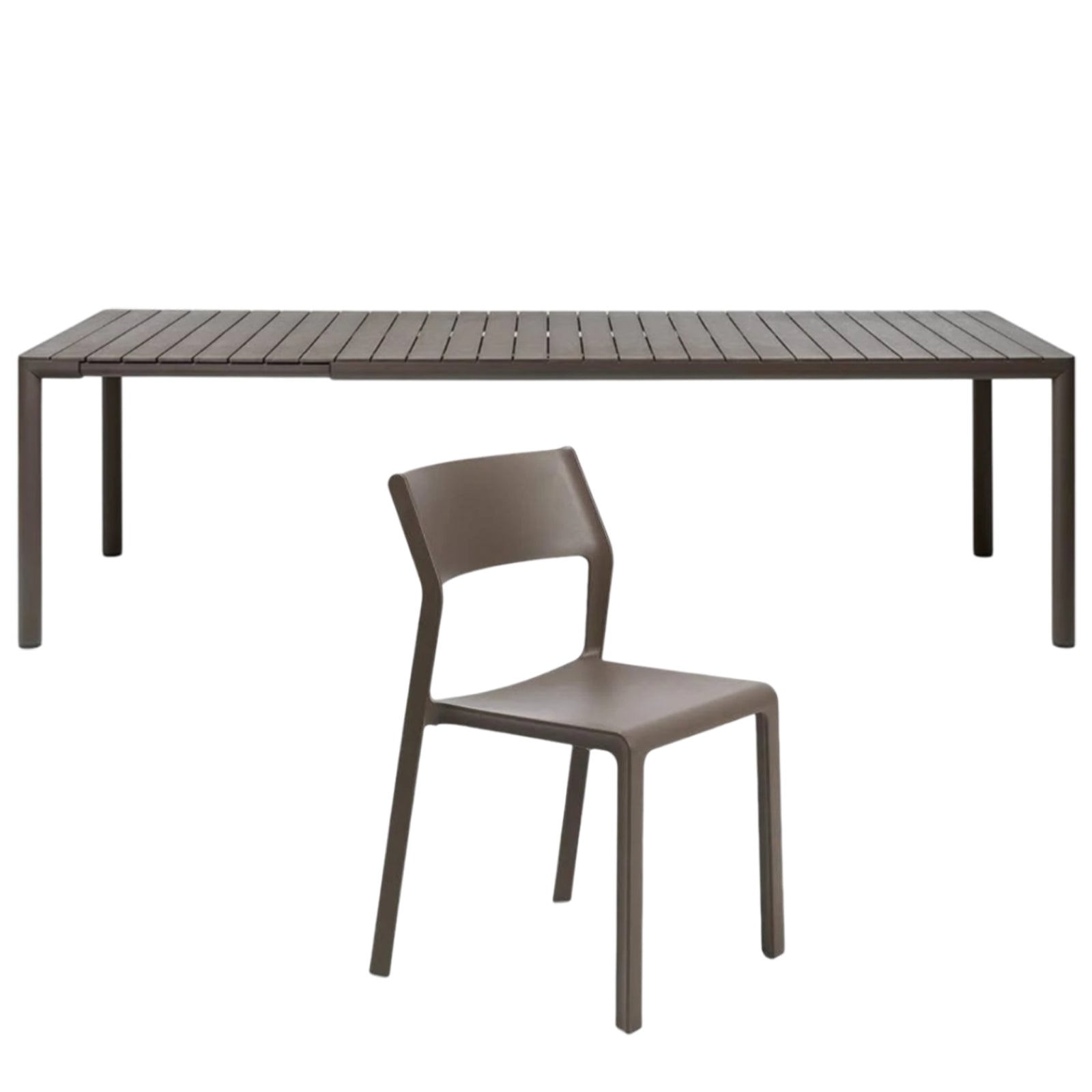 Il Set Tavolo Tevere 150 Extensible con 6 Sedie Trill Bistrot di Nardi è la soluzione perfetta per arredare con stile il tuo spazio outdoor. Il tavolo, estendibile da 150 cm a 210 cm, è progettato per ospitare comodamente 6/8 persone, mentre le sedie Trill Bistrot offrono un equilibrio perfetto tra design, resistenza e comfort.