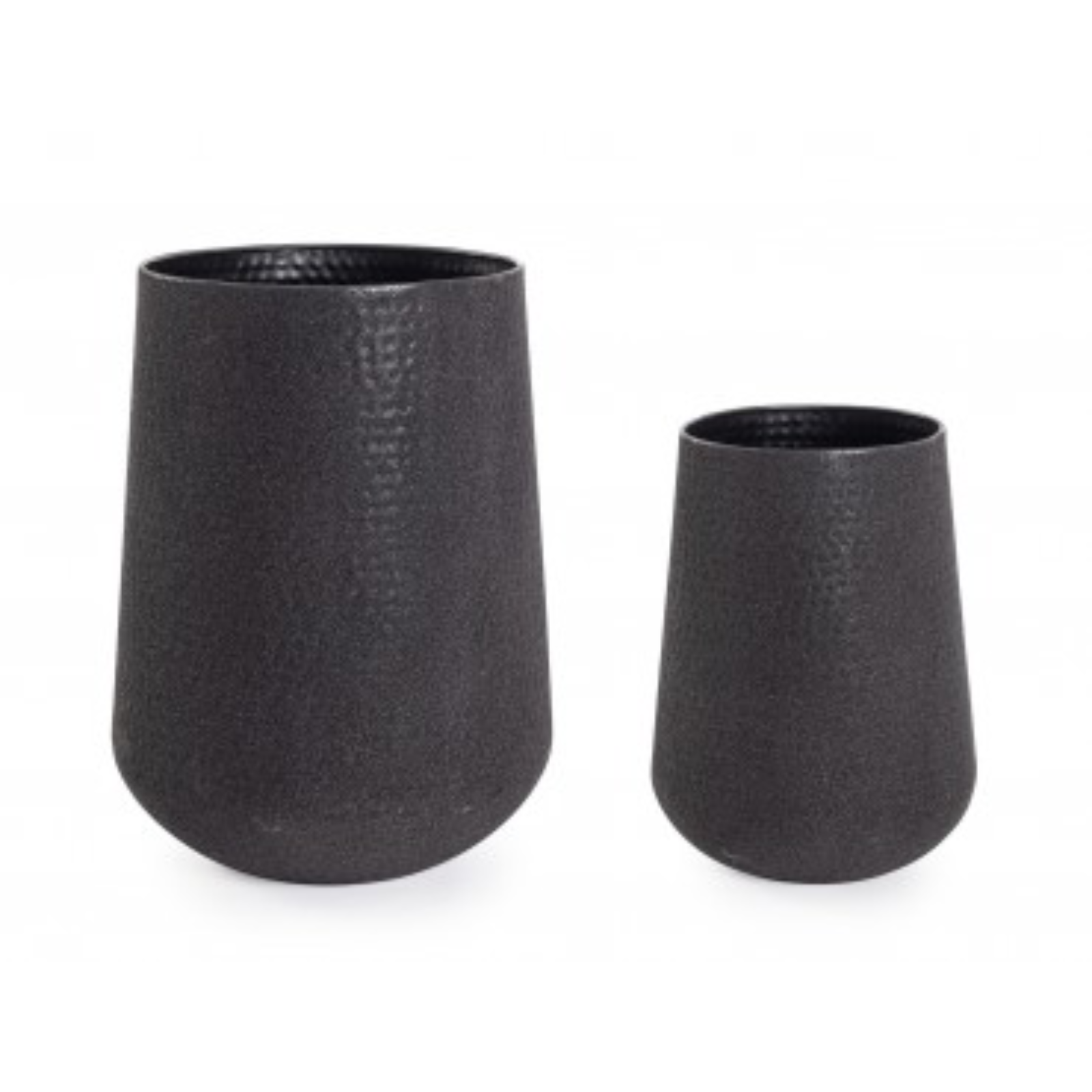 Set 2 Portavaso Kenar Tondo Nero Alto in metallo lavorato artigianalmente.