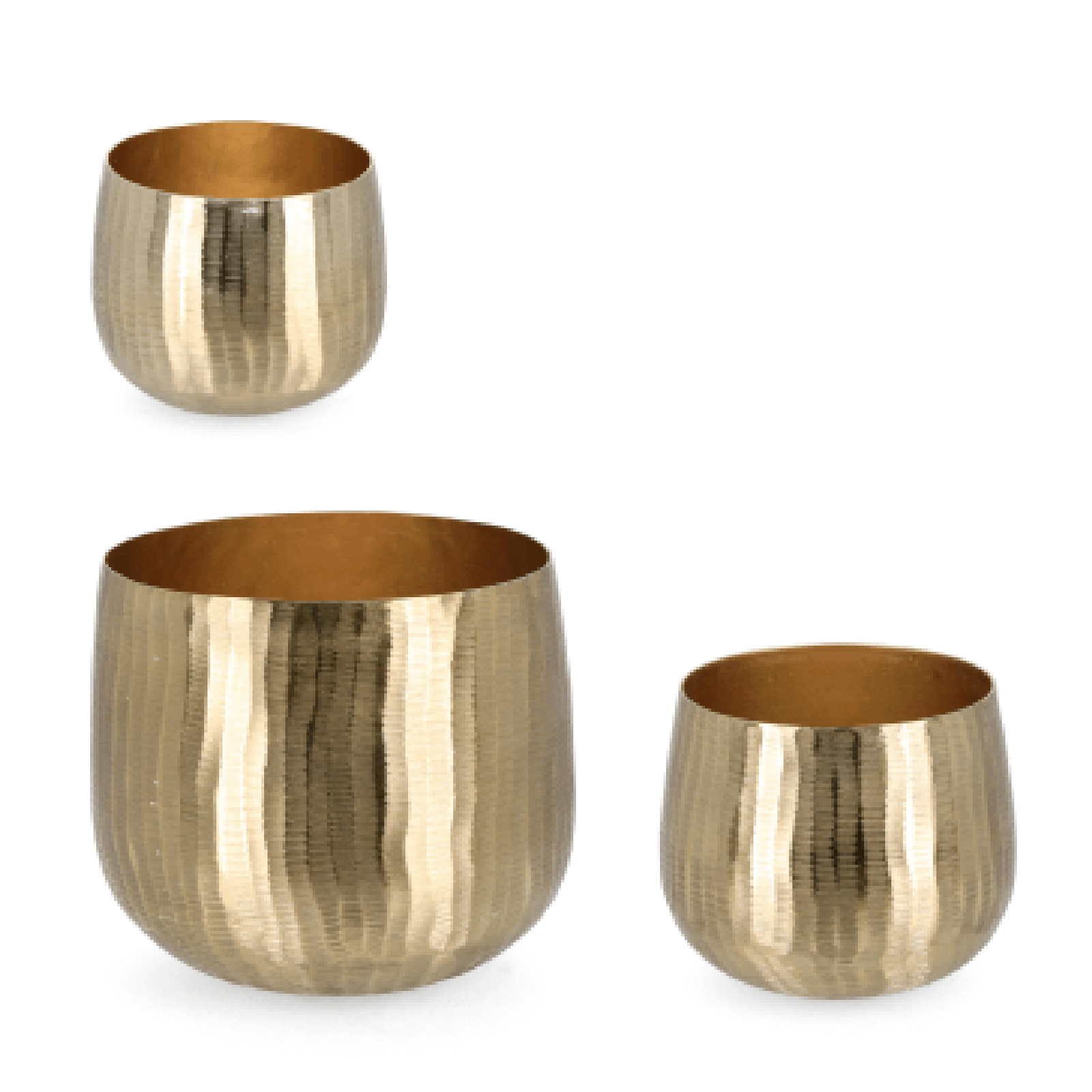Realizzati artigianalmente in alluminio, questi portavasi sono pensati esclusivamente per uso decorativo.
