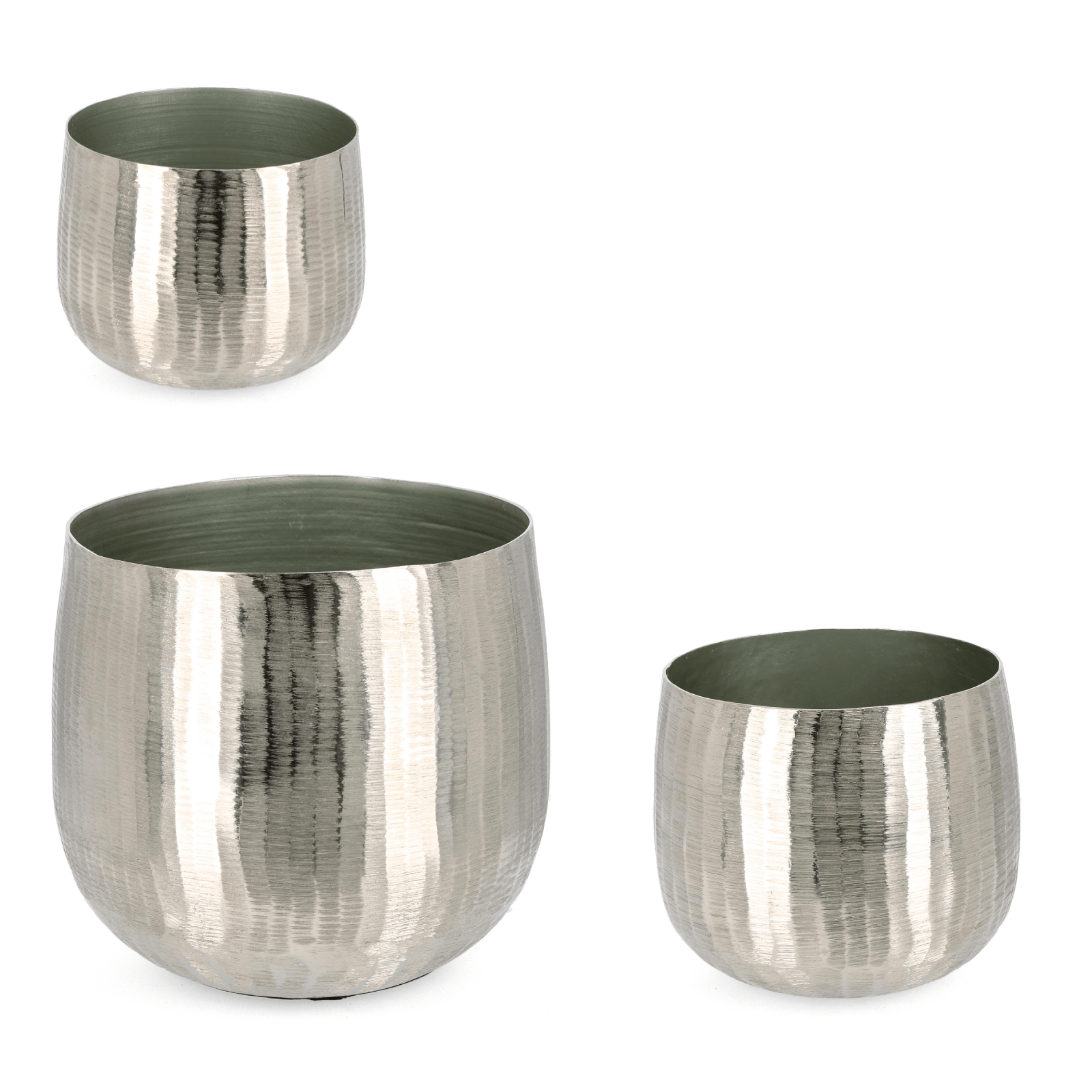 La lavorazione artigianale dell'alluminio conferisce a questi portavasi un carattere unico e una bellezza senza tempo.